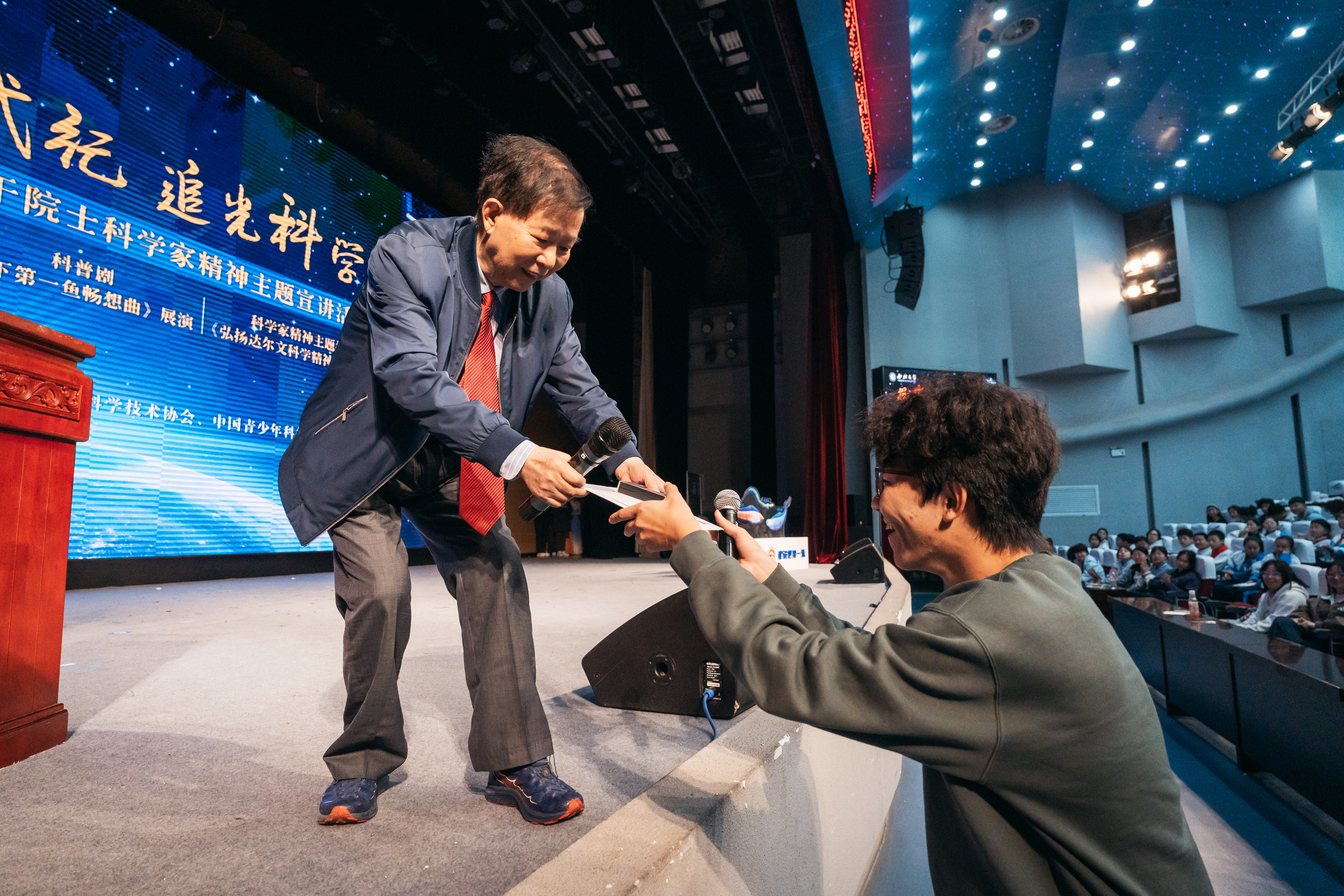 从光影里的科研故事,到舞台上的科学叙事,再到院士面对面的精神引领,这场“探秘寒武纪・追光科学魂”主题活动,不仅是一次科学知识的普及,更是一堂生动的 “立德树人” 思政课,深刻诠释了 “学高为师,身正为范” 的师德师风内核。(图/马骞 刘泽开)