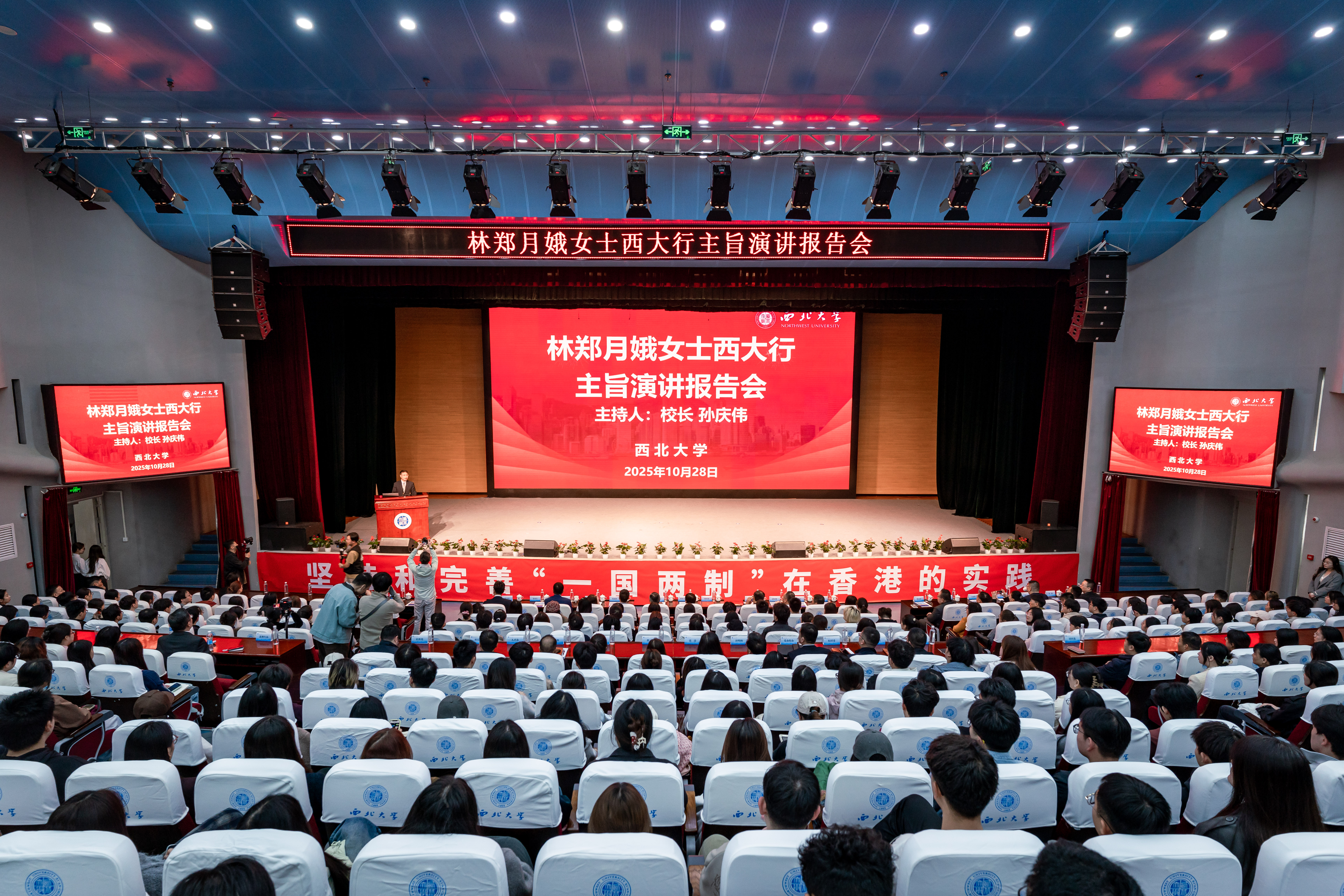 10月28日下午,香港特别行政区第五任行政长官林郑月娥到访我校,为师生作了题为“坚持和完善‘一国两制’在香港的实践”的主旨演讲。多省香港商会代表陪同访问。