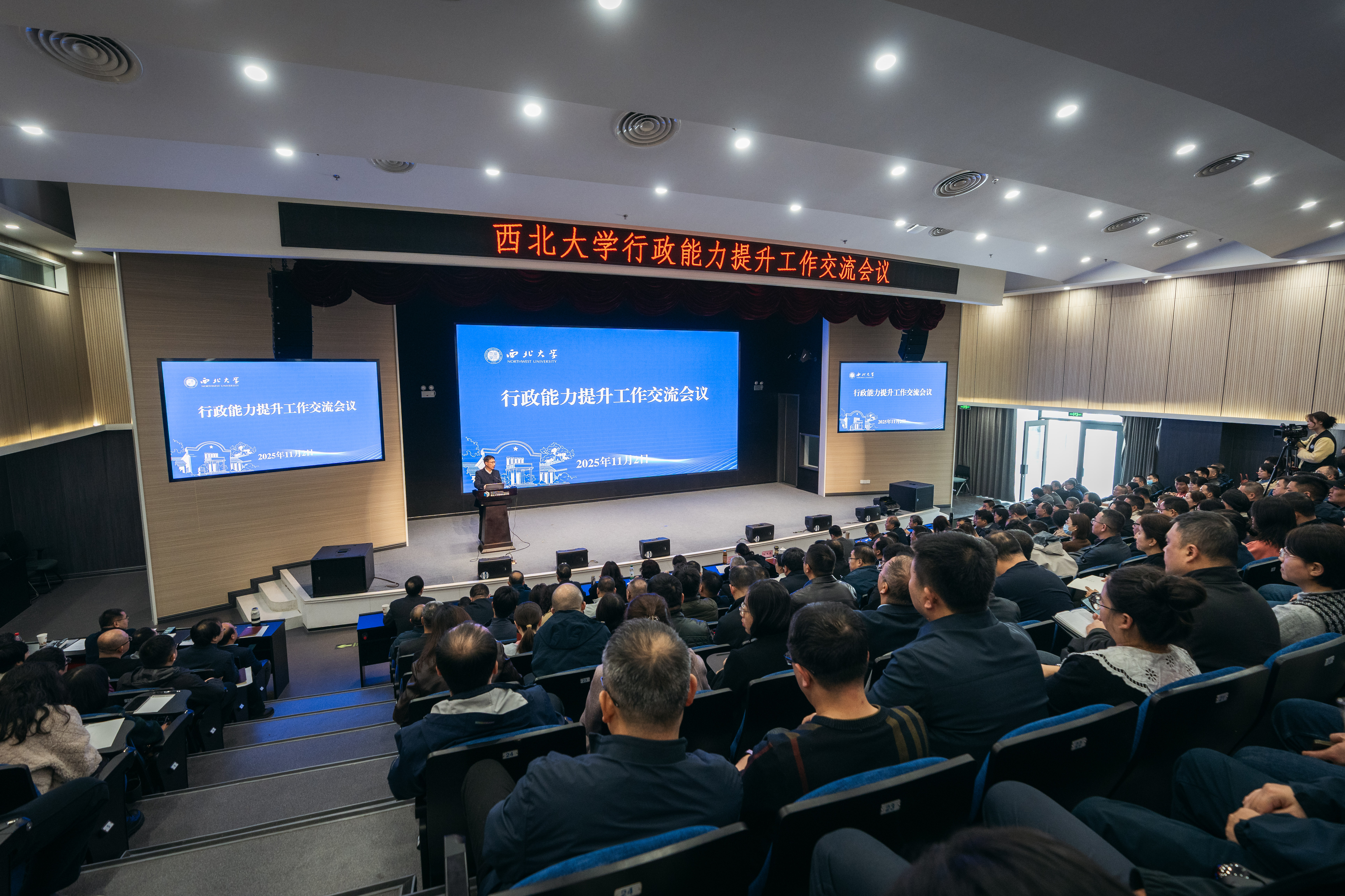 11月2日下午,我校行政能力提升工作交流会议在长安校区举行,校长孙庆伟,校内各单位主要负责人,院系党委(直属党支部)副书记、团委(直属团支部)书记,各单位分管行政工作负责人、办公室主任(秘书)和工作人员等共230余人参加会议。会议由校党委副书记张清主持。
