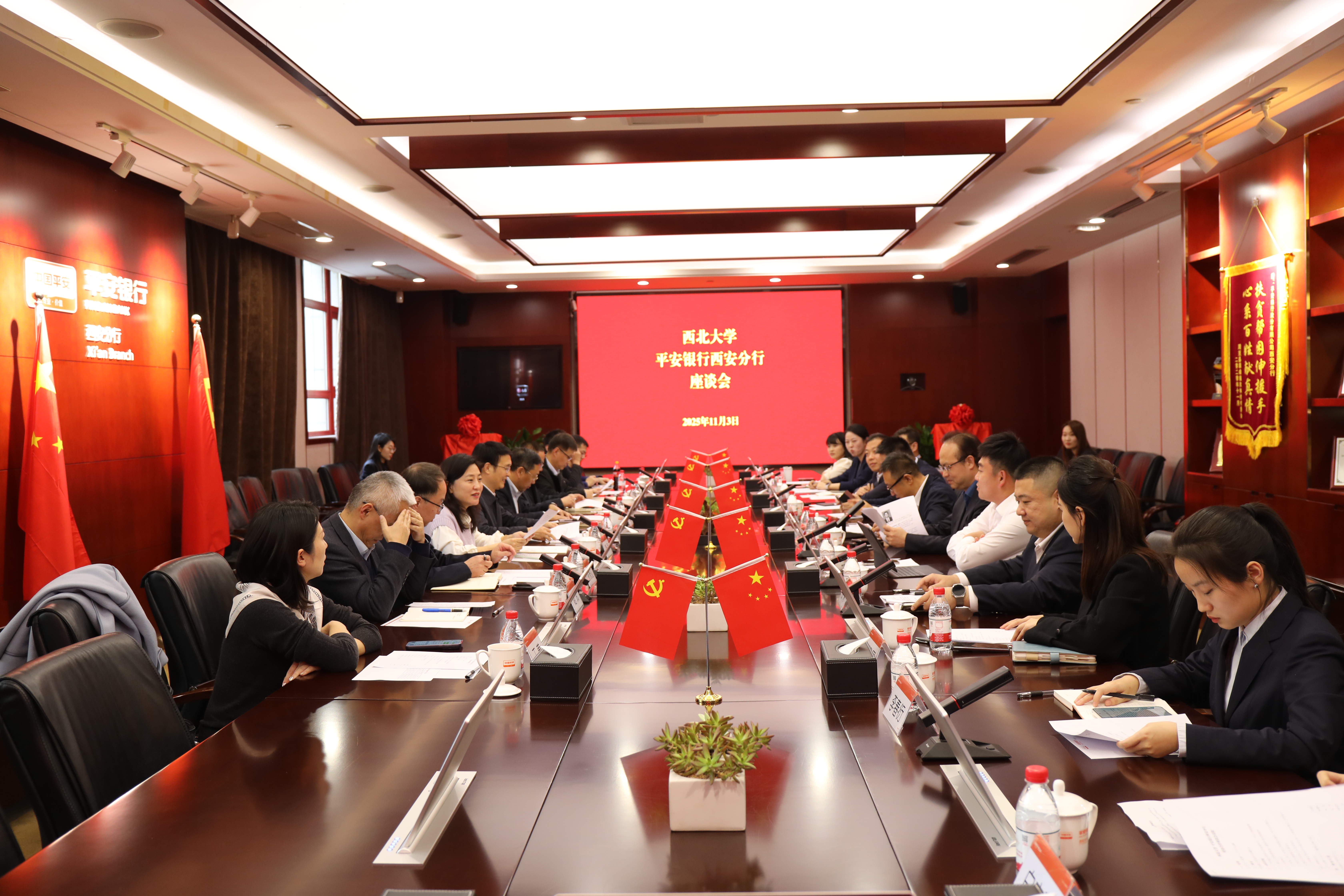 11月3日,校党委常委、副校长张远军一行赴平安银行西安分行访企拓岗并交流座谈,学校就创中心、文学院、经济管理学院、新闻传播学院、物理学院、电子信息学院(人工智能学院)负责人参加活动。