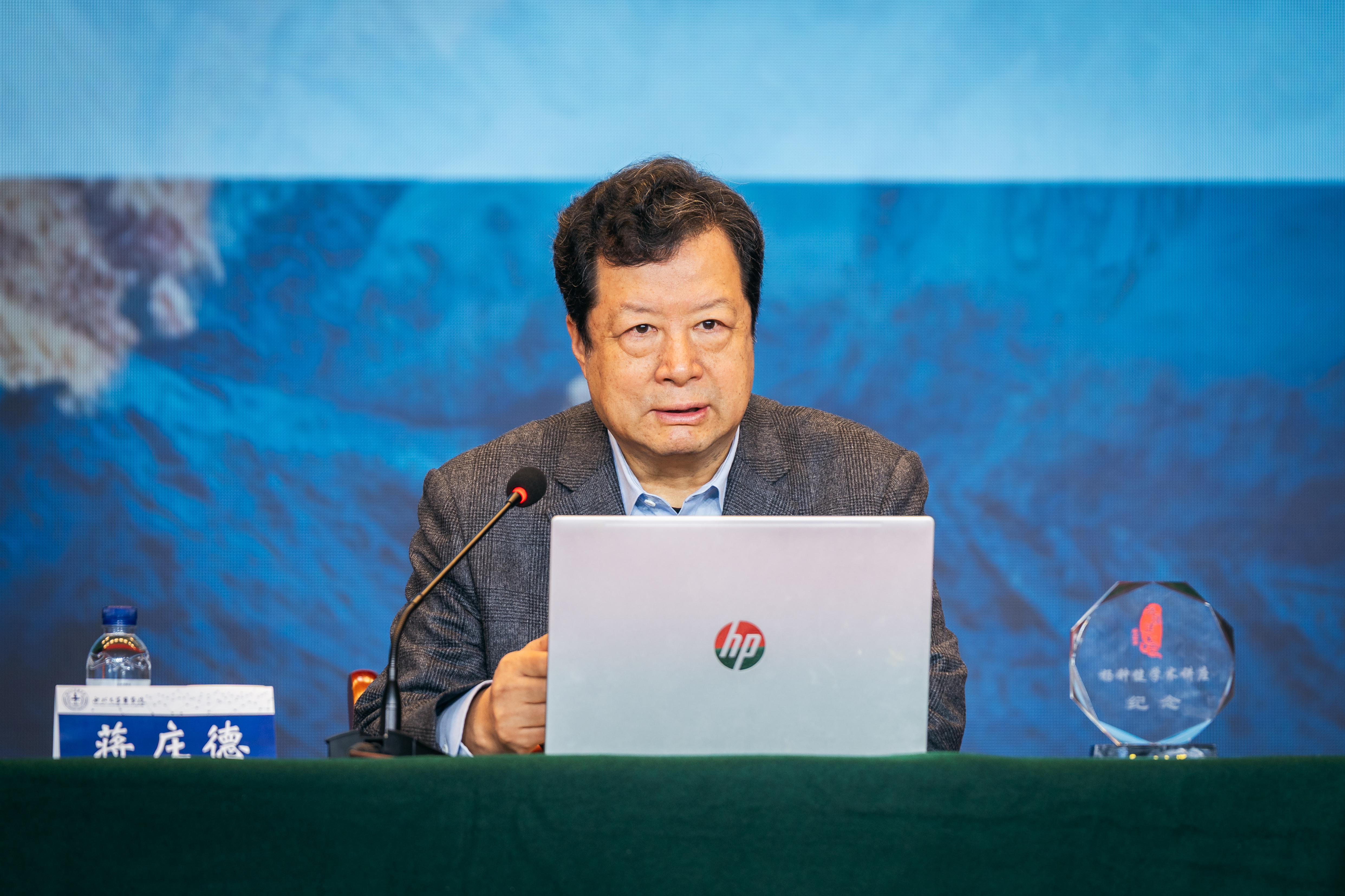 蒋林向蒋庄德院士赠送“杨钟健学术讲座”纪念牌