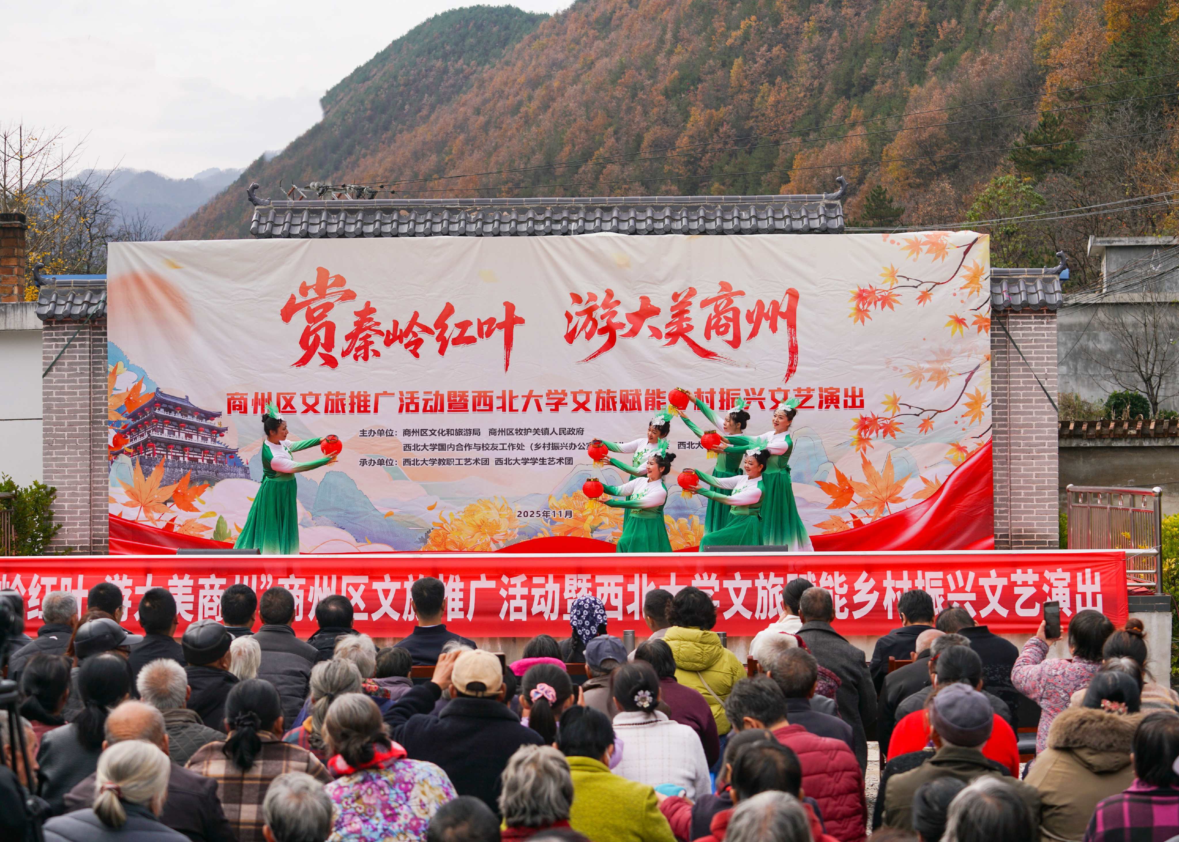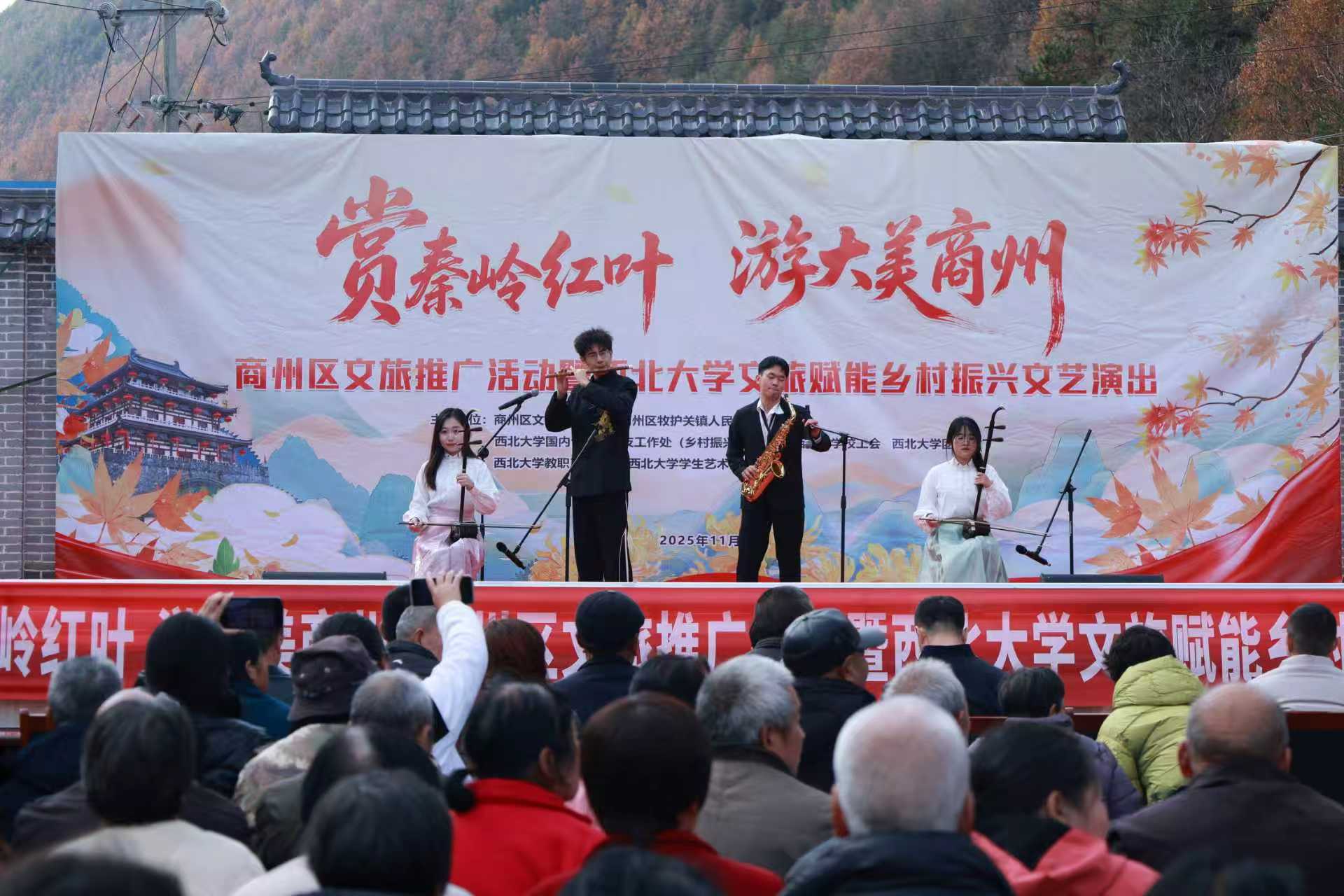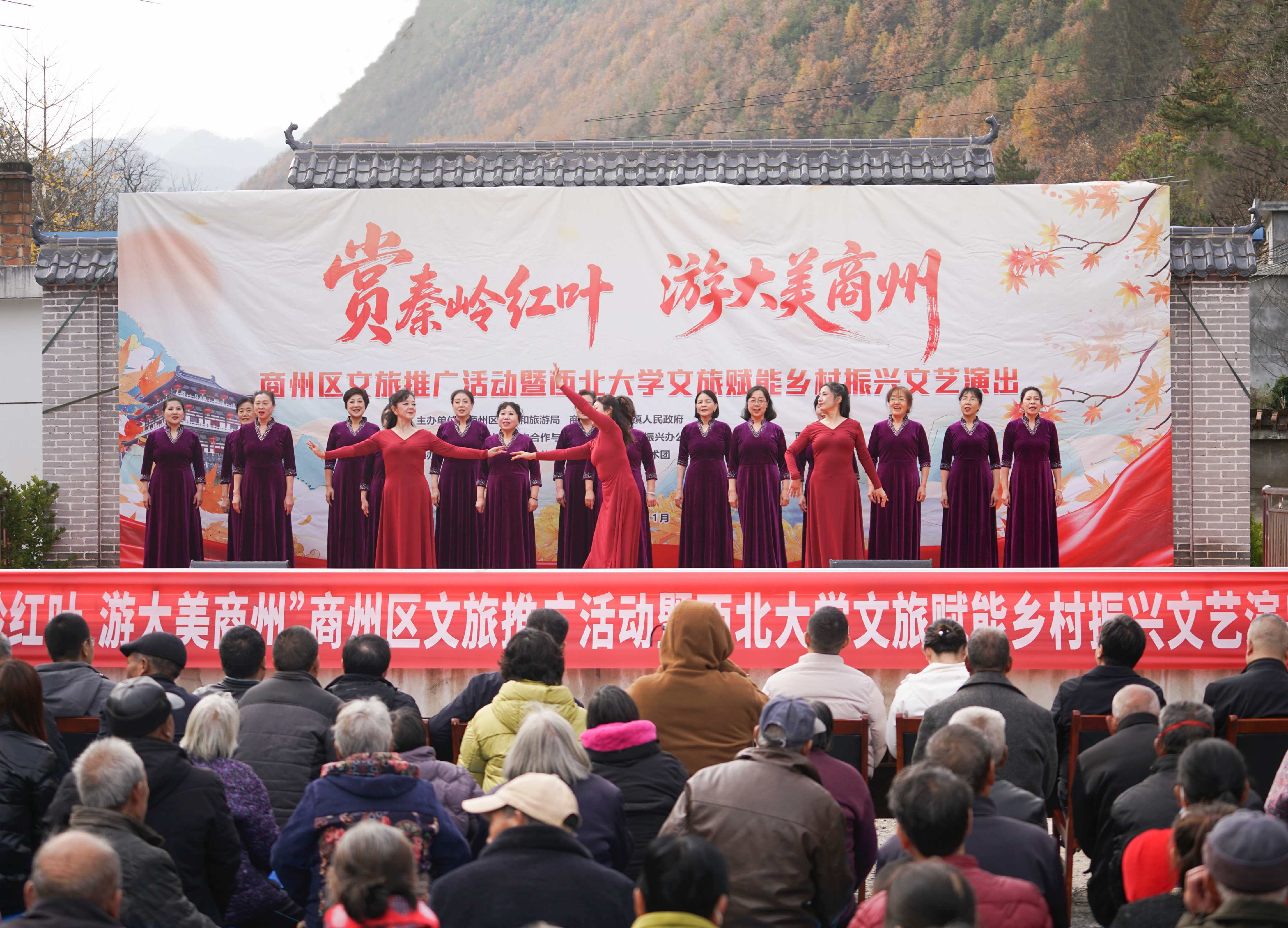 为深化文化振兴帮扶实效,推动乡村文旅深度融合,进一步密切我校与定点帮扶商州区的合作关系,11月8日,在我校定点帮扶商州区牧护关镇铁炉子村,我校与商州区文旅局、商州区牧护关镇人民政府等联合举办“赏秦岭红叶,游大美商州”商州区文旅推广暨乐动网页版登录入口文旅赋能乡村振兴文艺演出活动。
