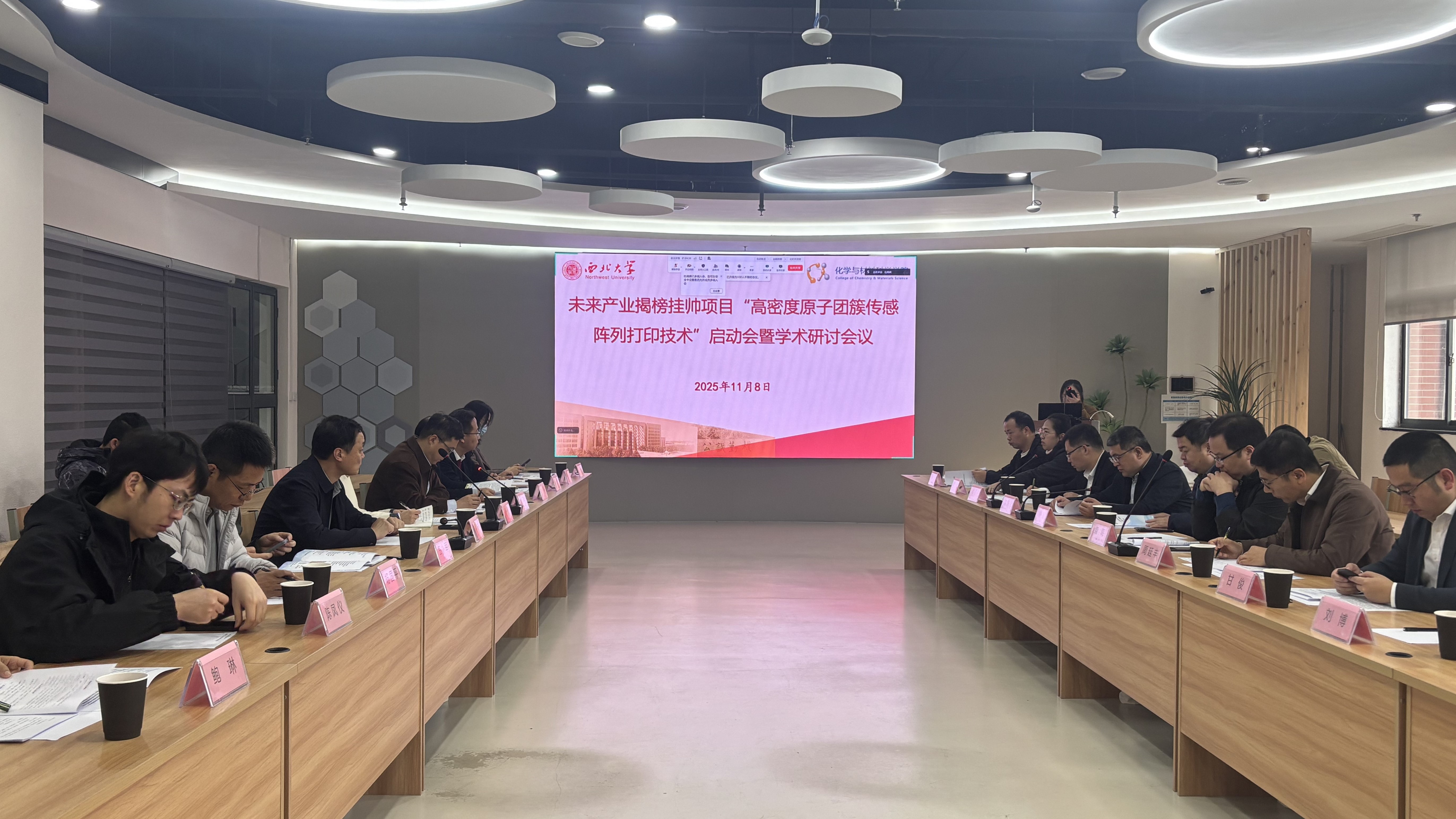 11月8日,我校牵头承担的2025年未来产业创新任务“揭榜挂帅”项目——“高密度原子团簇传感阵列打印技术”启动会暨学术研讨会议在长安校区召开,会议采用线下+线上形式举行。
