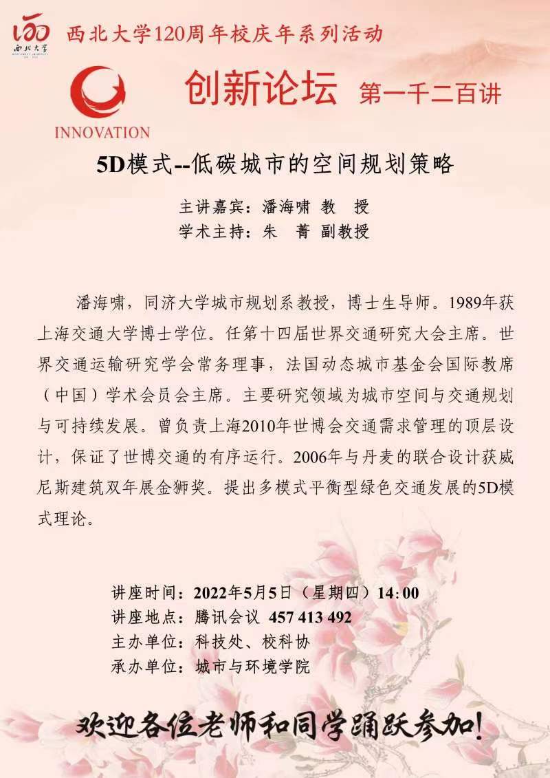 潘海啸 教授 乐动网页版登录入口创新论坛第一千二百讲暨120周年校庆年系列活动:5D模式--低碳城市的空间规划策略 讲座时间 2022年5月5日(星期四)14:00 讲座地点 腾讯会议:457 413 492 讲座人介绍 潘海啸 教授 讲座内容