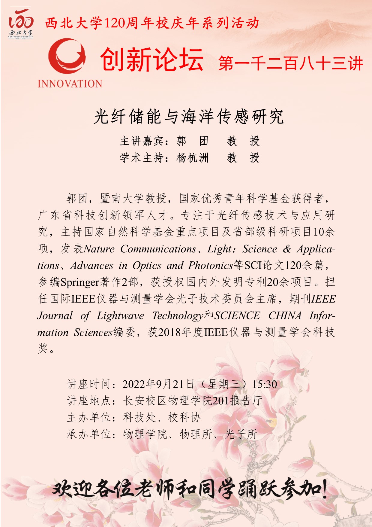 郭团 教授 乐动网页版登录入口创新论坛第一千二百八十三讲暨120周年校庆年系列活动::光纤储能与海洋传感研究 讲座时间 2022年9月21日(星期三) 15:30 讲座地点 物理学院201报告厅 讲座人介绍 郭团 教授 讲座内容