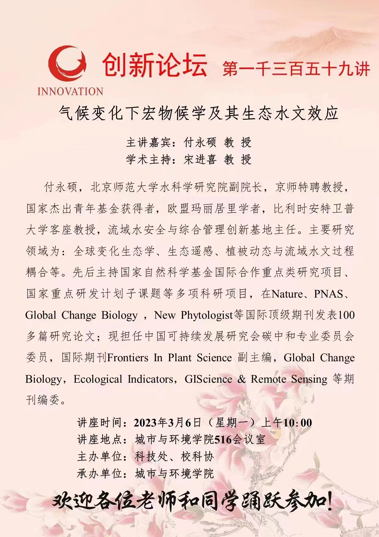 乐动网页版登录入口创新论坛第一千三百五十九讲:气候变化下宏物候学及生态水文效应