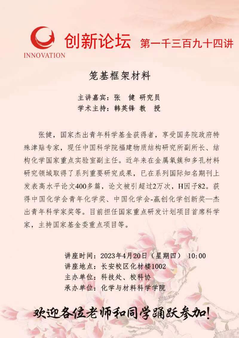 乐动网页版登录入口创新论坛第一千三百九十五讲:配位聚合物多孔材料与吸附分离