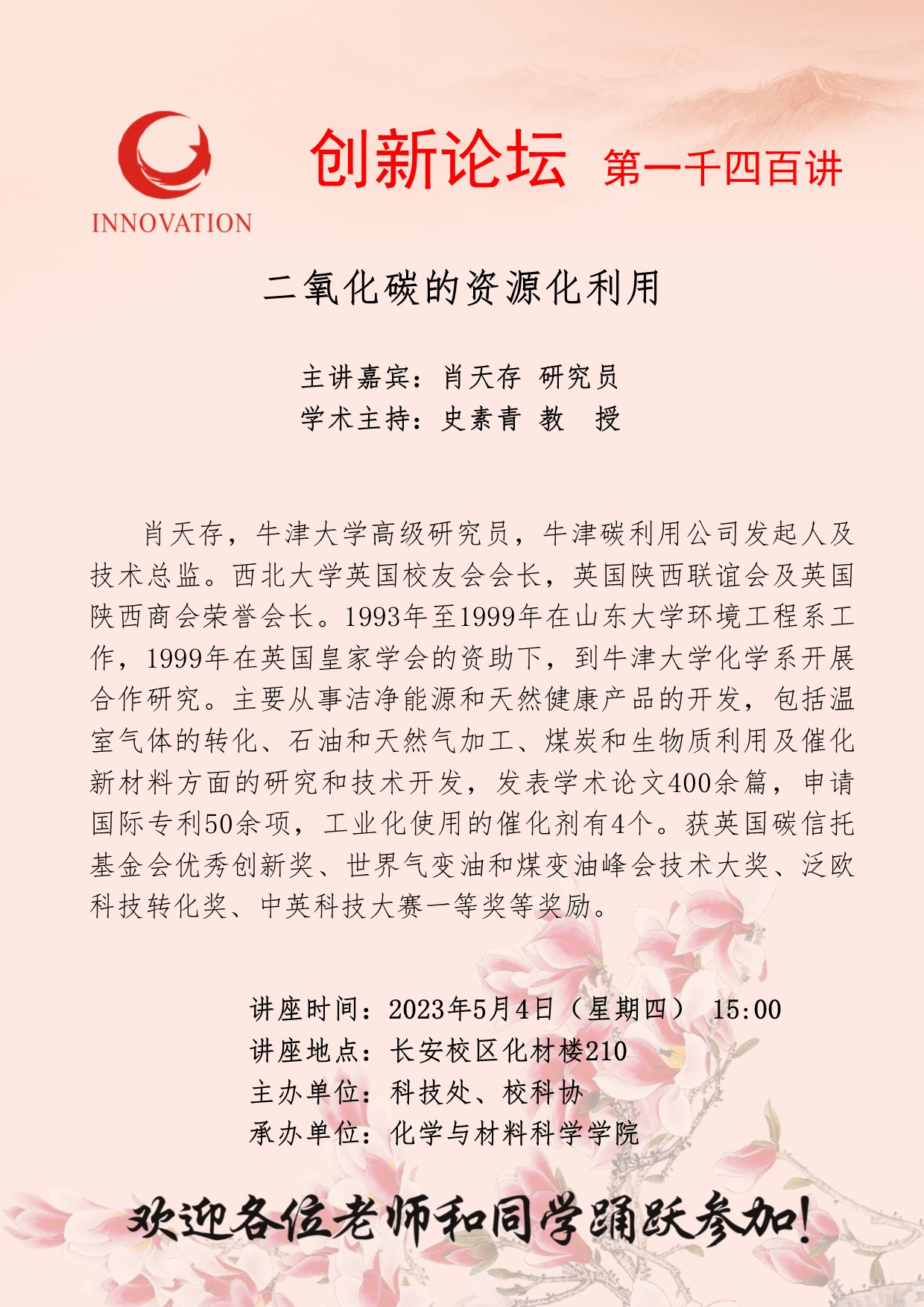乐动网页版登录入口创新论坛第一千四百讲:二氧化碳的资源化利用