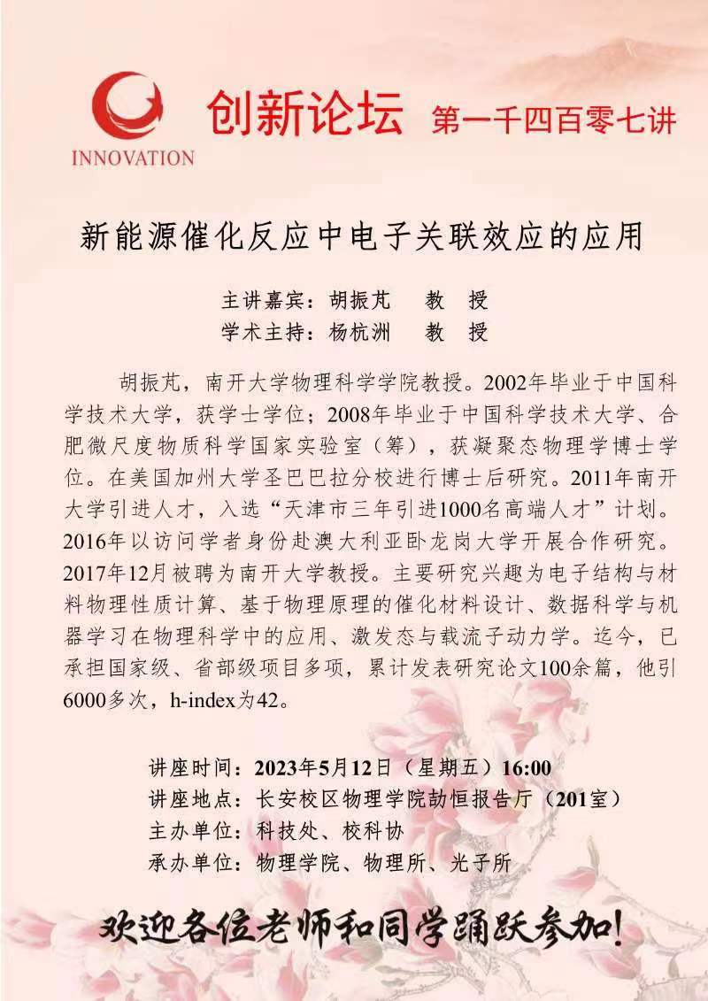胡振芃 教 授 乐动网页版登录入口创新论坛第一千四百零七讲:新能源催化反应中电子关联效应的应用 讲座时间 2023年5月12日(星期五)16:00 讲座地点 长安校区物理学院劼恒报告厅(201室) 讲座人介绍 胡振芃 教 授 讲座内容