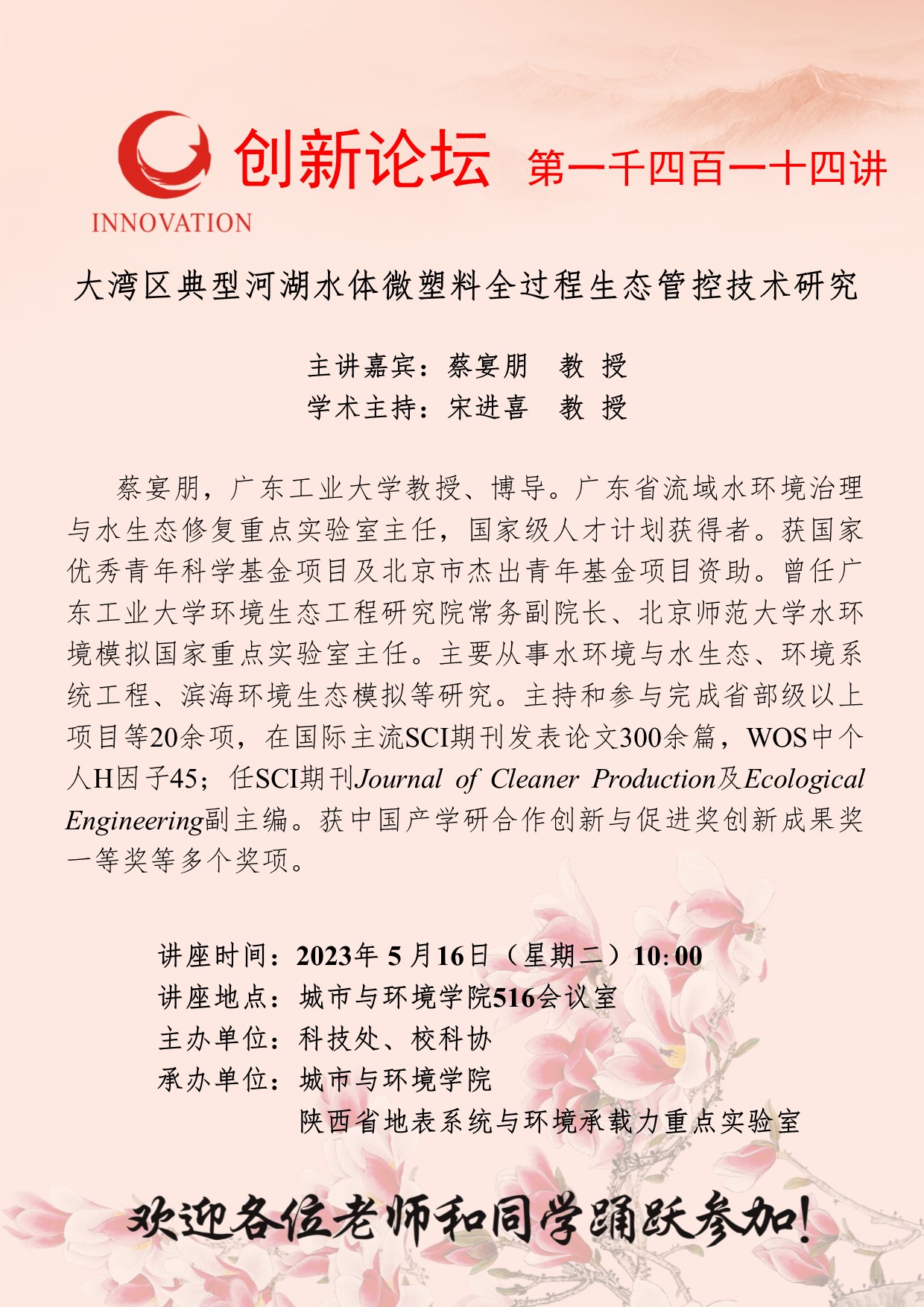 蔡宴朋 教 授 乐动网页版登录入口创新论坛第一千四百一十四讲:大湾区典型河湖水体微塑料全过程生态管控技术研究 讲座时间 2023年 5 月16日(星期二)10:00 讲座地点 城市与环境学院516会议室 讲座人介绍 蔡宴朋 教 授 讲座内容