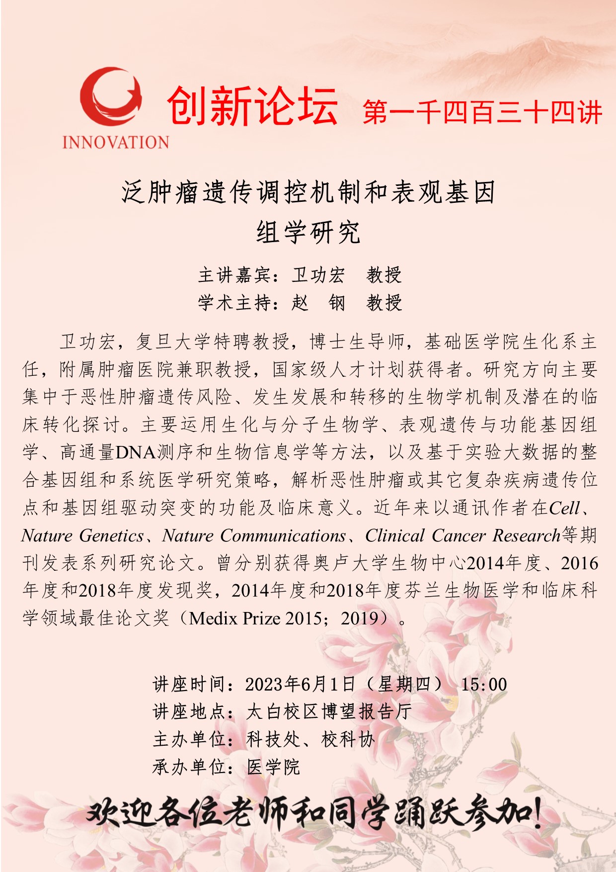 卫功宏 教授 乐动网页版登录入口创新论坛第一千四百三十四讲:泛肿瘤遗传调控机制和表观基因组学研究 讲座时间 2023年6月1日(星期四) 15:00 讲座地点 太白校区博望报告厅 讲座人介绍 卫功宏 教授 讲座内容