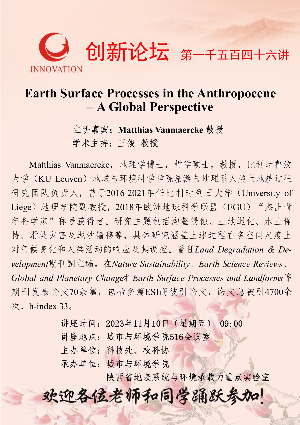 Matthias Vanmaercke 教授 乐动网页版登录入口创新论坛第一千五百四十六讲:Earth Surface Processes in the Anthropocene – A Global Perspective 讲座时间 2023年11月10日(星期五) 09:00 讲座地点 城市与环境学院516会议室 讲座人介绍 Matthias Vanmaercke 教授 讲座内容