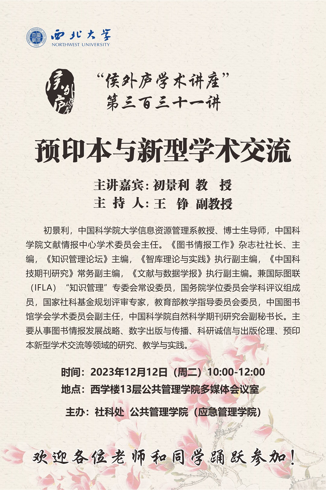 侯外庐学术讲座第三百三十一讲:预印本与新型学术交流