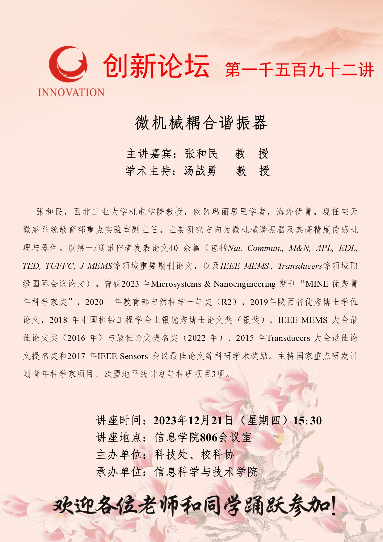 乐动网页版登录入口创新论坛第一千五百九十二讲:微机械耦合谐振器