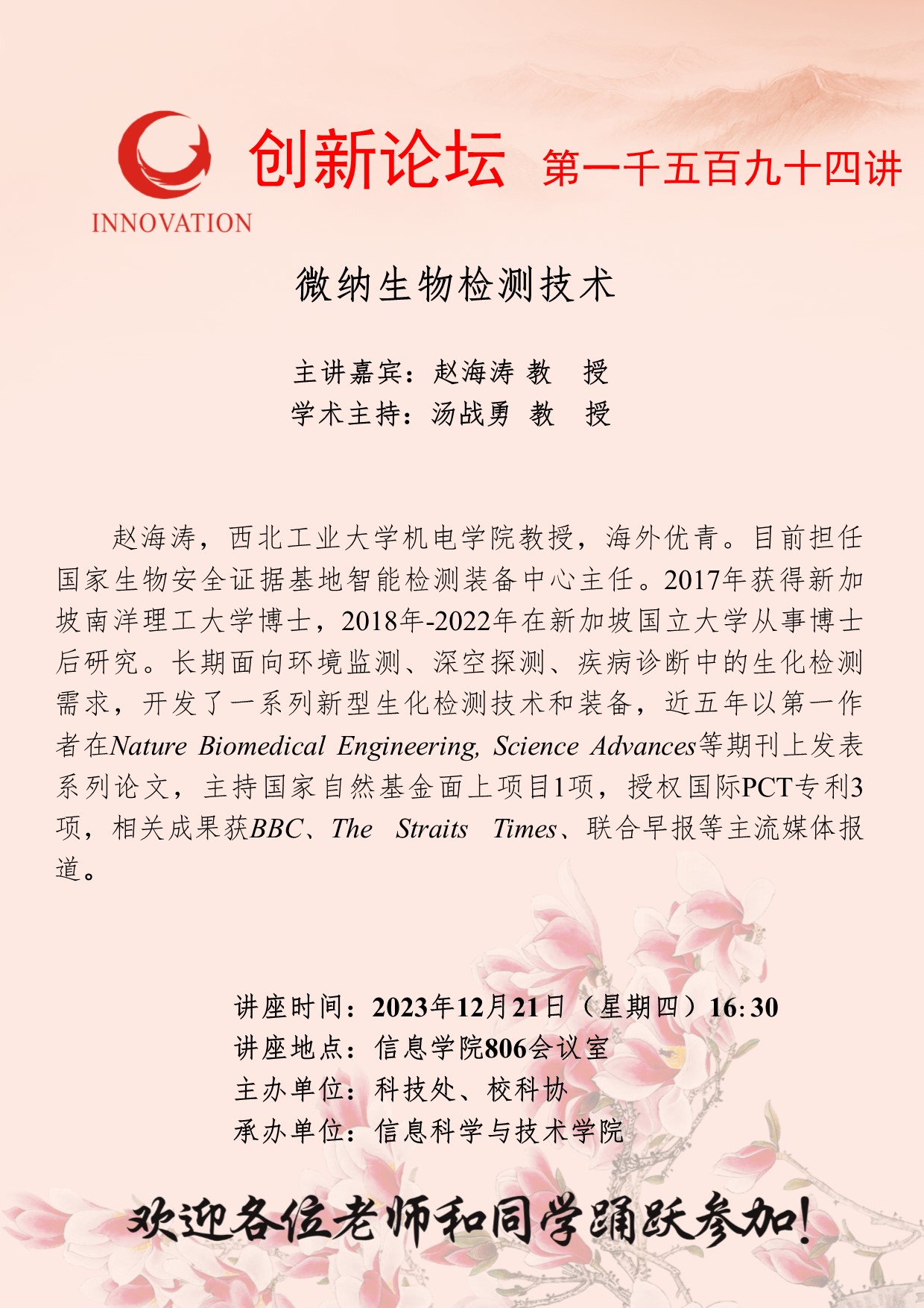 乐动网页版登录入口创新论坛第一千五百九十四讲:微纳生物检测技术