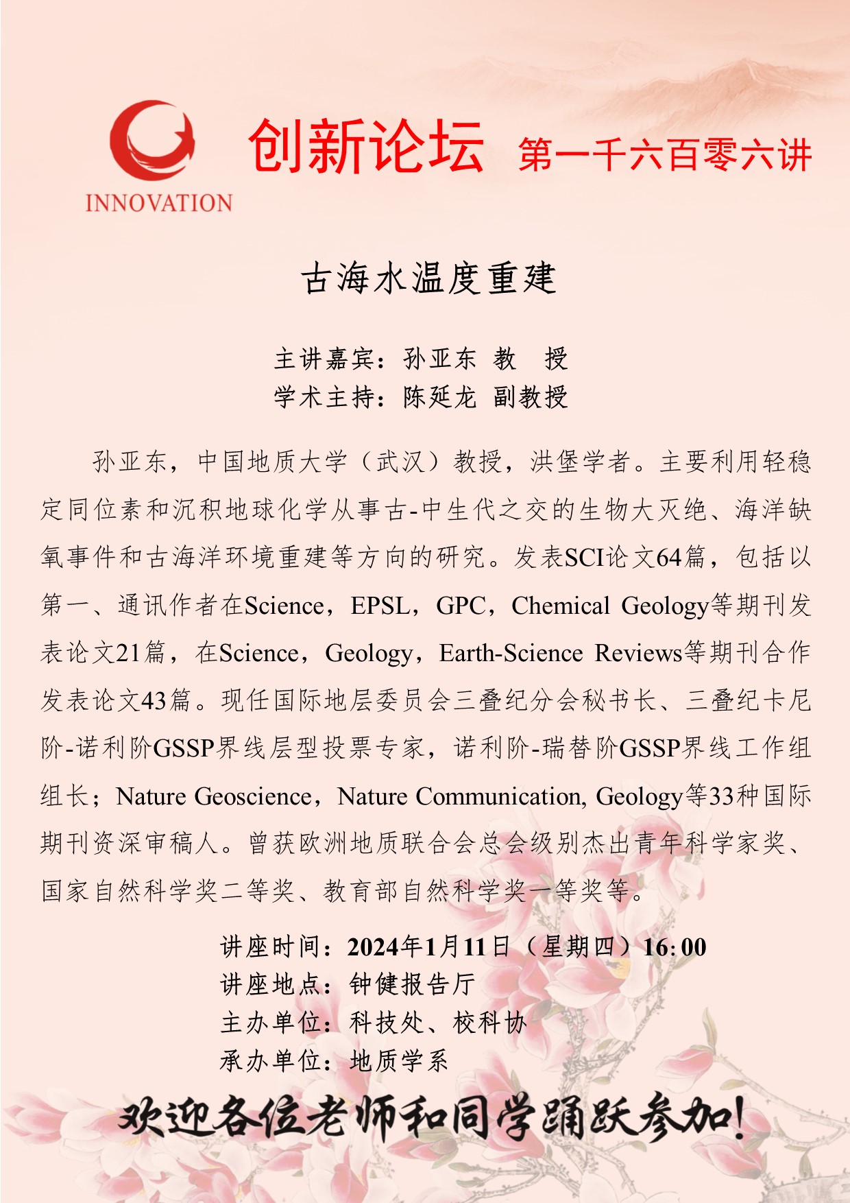 乐动网页版登录入口创新论坛第一千六百零六讲: 古海水温度重建