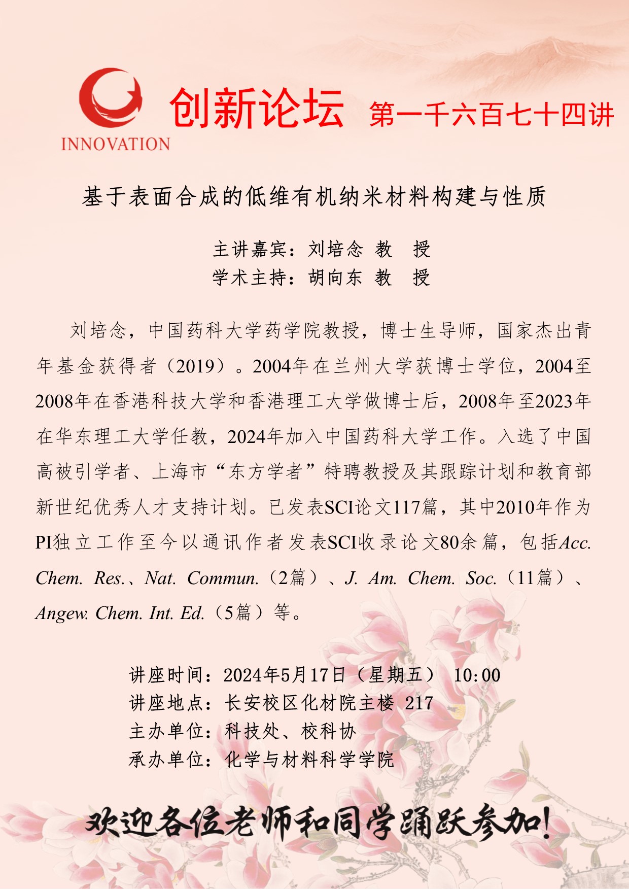 刘培念 教授 乐动网页版登录入口创新论坛第一千六百七十四讲:基于表面合成的低维有机纳米材料构建与性质 讲座时间 2024年5月17日(星期五) 10:00 讲座地点 长安校区化材院主楼 217 讲座人介绍 刘培念 教授 讲座内容
