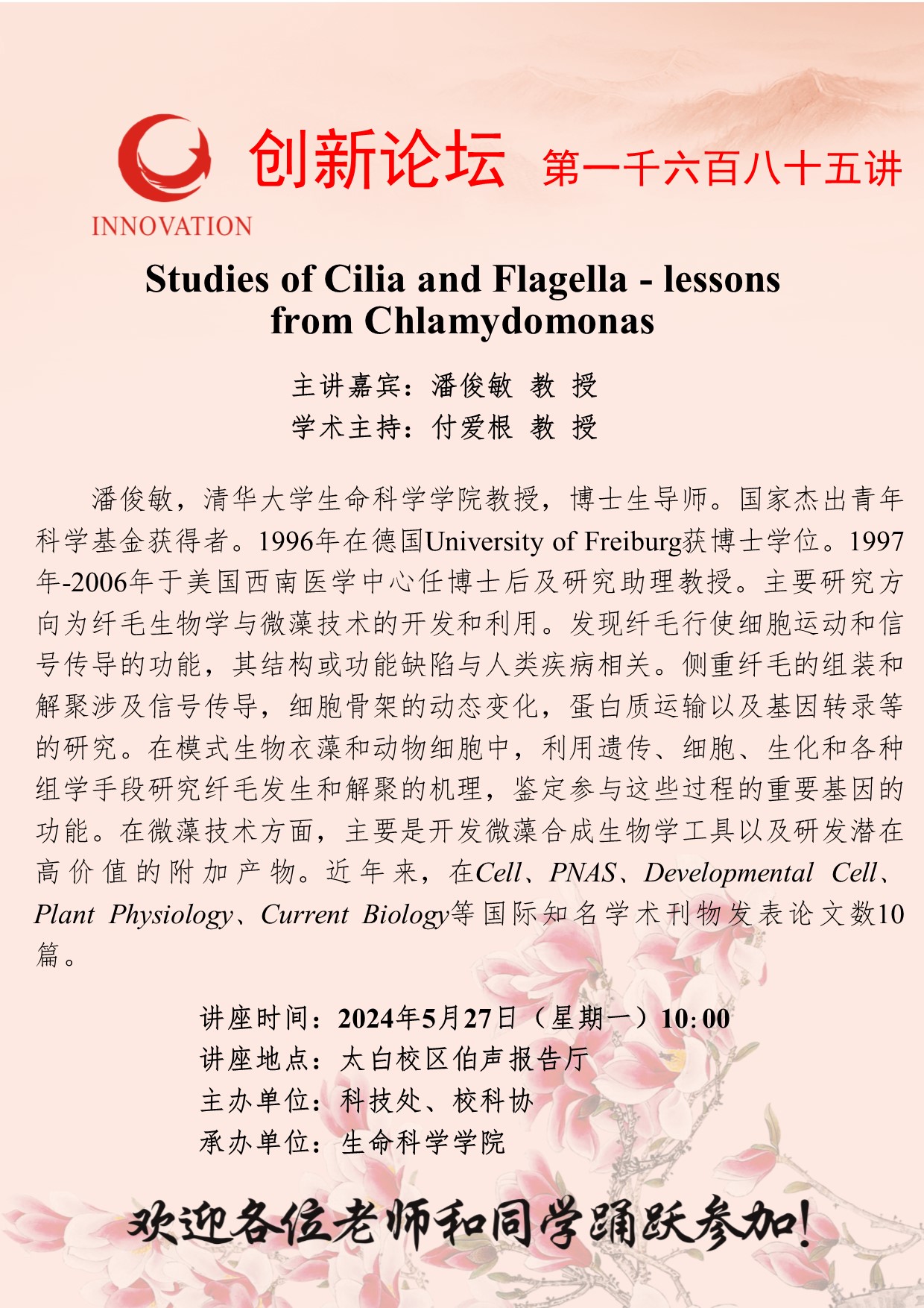潘俊敏 教授 乐动网页版登录入口创新论坛第一千六百八十五讲:Studies of Cilia and Flagella - lessons from Chlamydomonas 讲座时间 2024年5月27日(星期一)10:00 讲座地点 太白校区伯声报告厅 讲座人介绍 潘俊敏 教授 讲座内容
