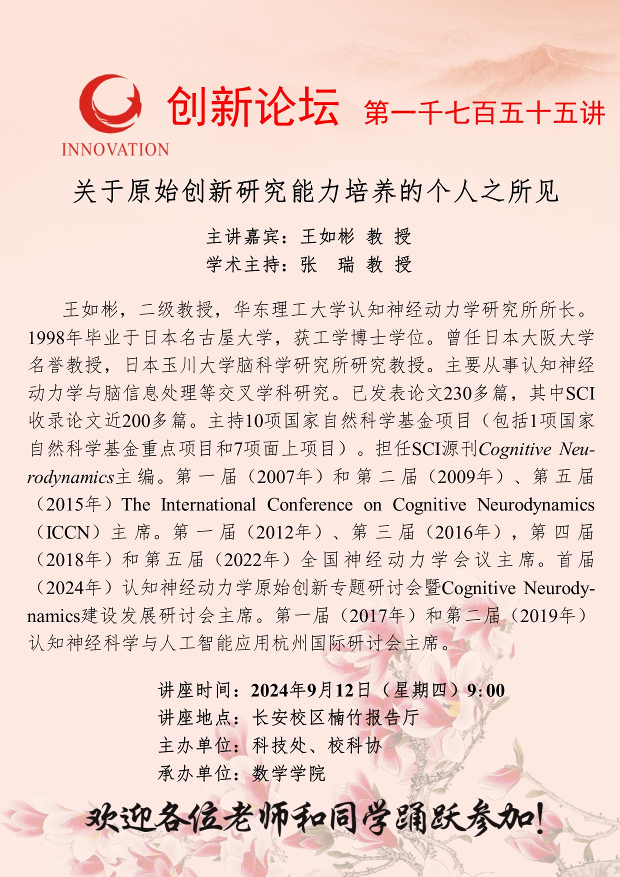 王如彬 教授 乐动网页版登录入口创新论坛第一千七百五十五讲:关于原始创新研究能力培养的个人之所见 讲座时间 2024年9月12日(星期四)9:00 讲座地点 长安校区楠竹报告厅 讲座人介绍 王如彬 教授 讲座内容