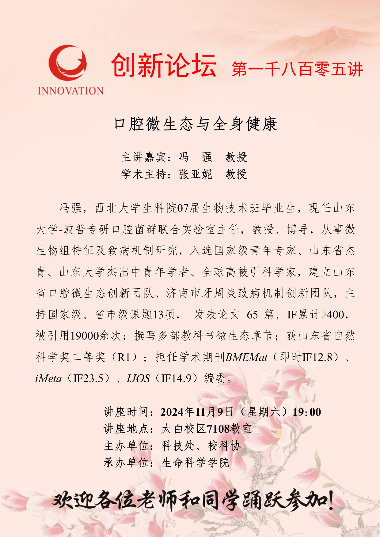 乐动网页版登录入口创新论坛第一千八百零五讲:口腔微生态与全身健康