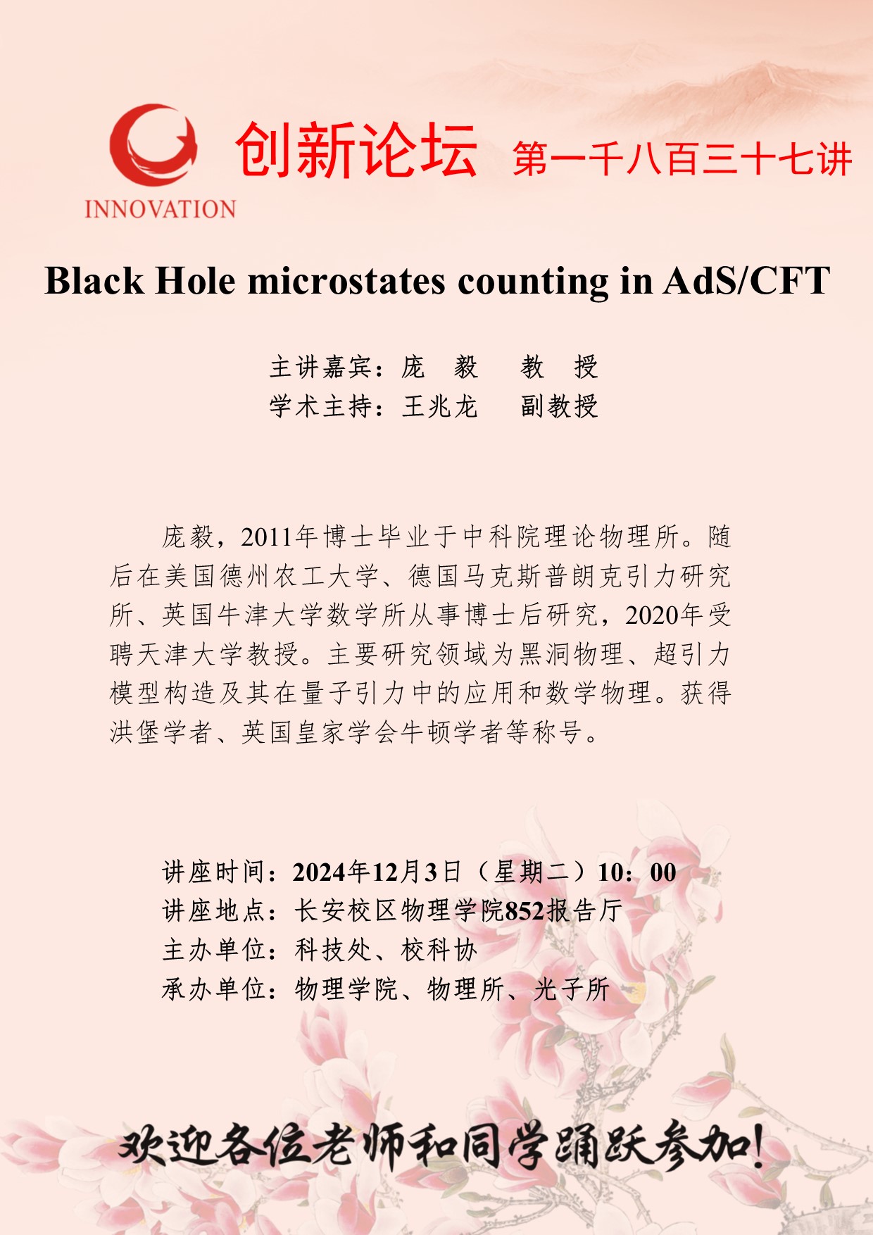 庞毅 教授 乐动网页版登录入口创新论坛第一千八百三十七讲:Black Hole microstates counting in AdS/CFT 讲座时间 2024年12月3日(星期二)10:00 讲座地点 长安校区物理学院852报告厅 讲座人介绍 庞毅 教授 讲座内容