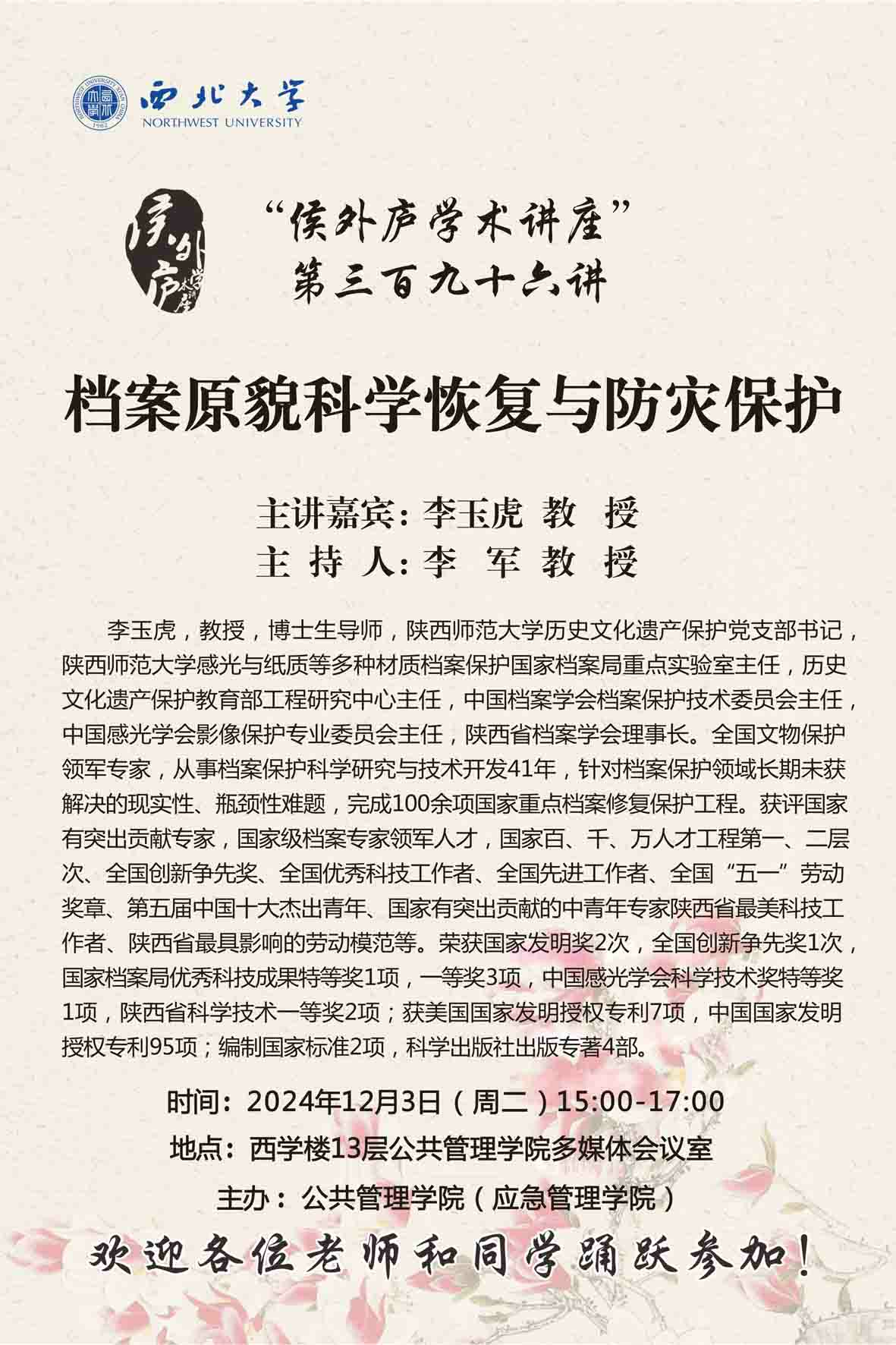 “侯外庐学术讲座”第三百九十六讲:档案原貌科学恢复与防灾保护