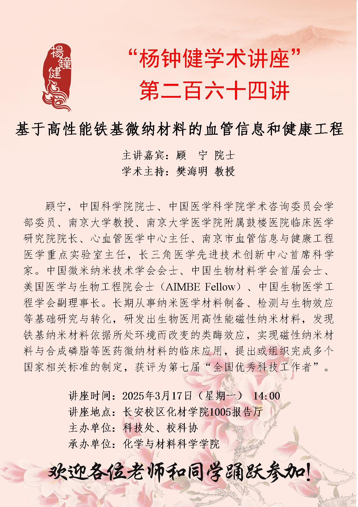 “杨钟健学术讲座”第二百六十四讲:基于高性能铁基微纳材料的血管信息和健康工程