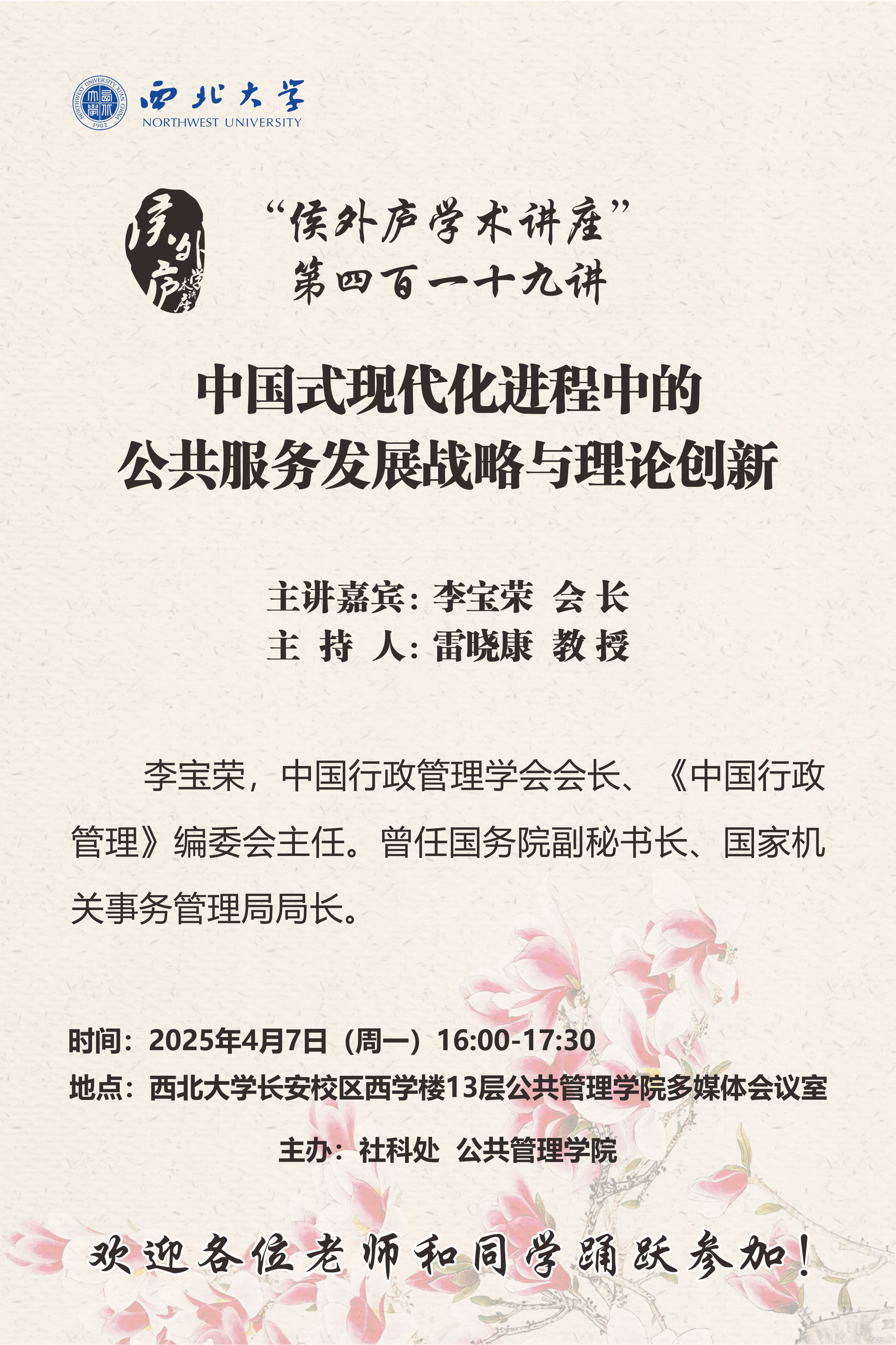 “侯外庐学术讲座”第四百一十九讲:中国式现代化进程中的公共服务发展战略与理论创新