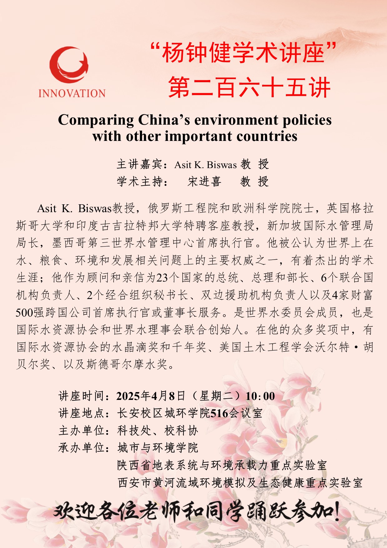 “杨钟健学术讲座” 第二百六十五讲:Comparing China’s environment policies with other important countries