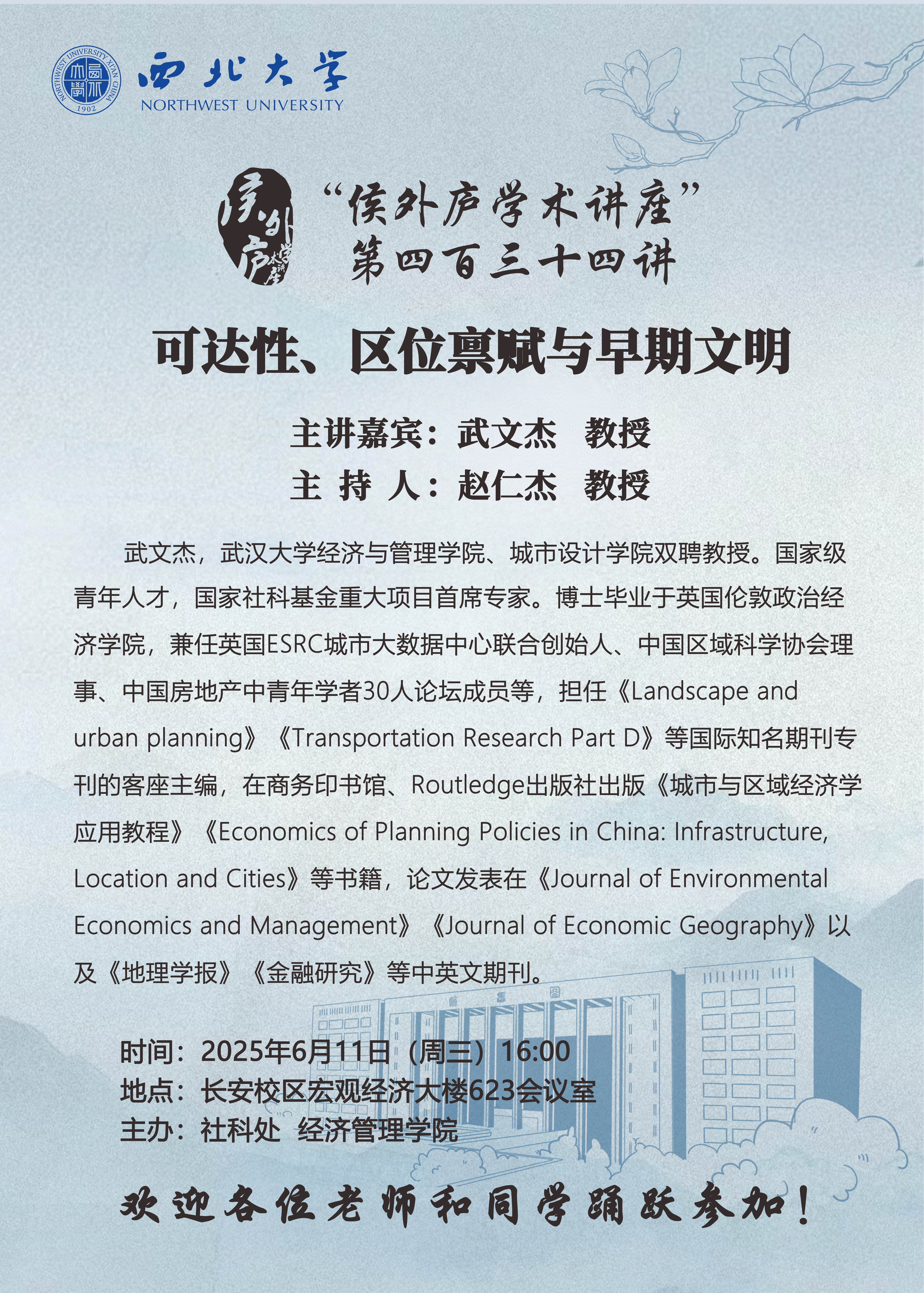 “侯外庐学术讲座”第四百三十四讲:可达性、区位禀赋与早期文明