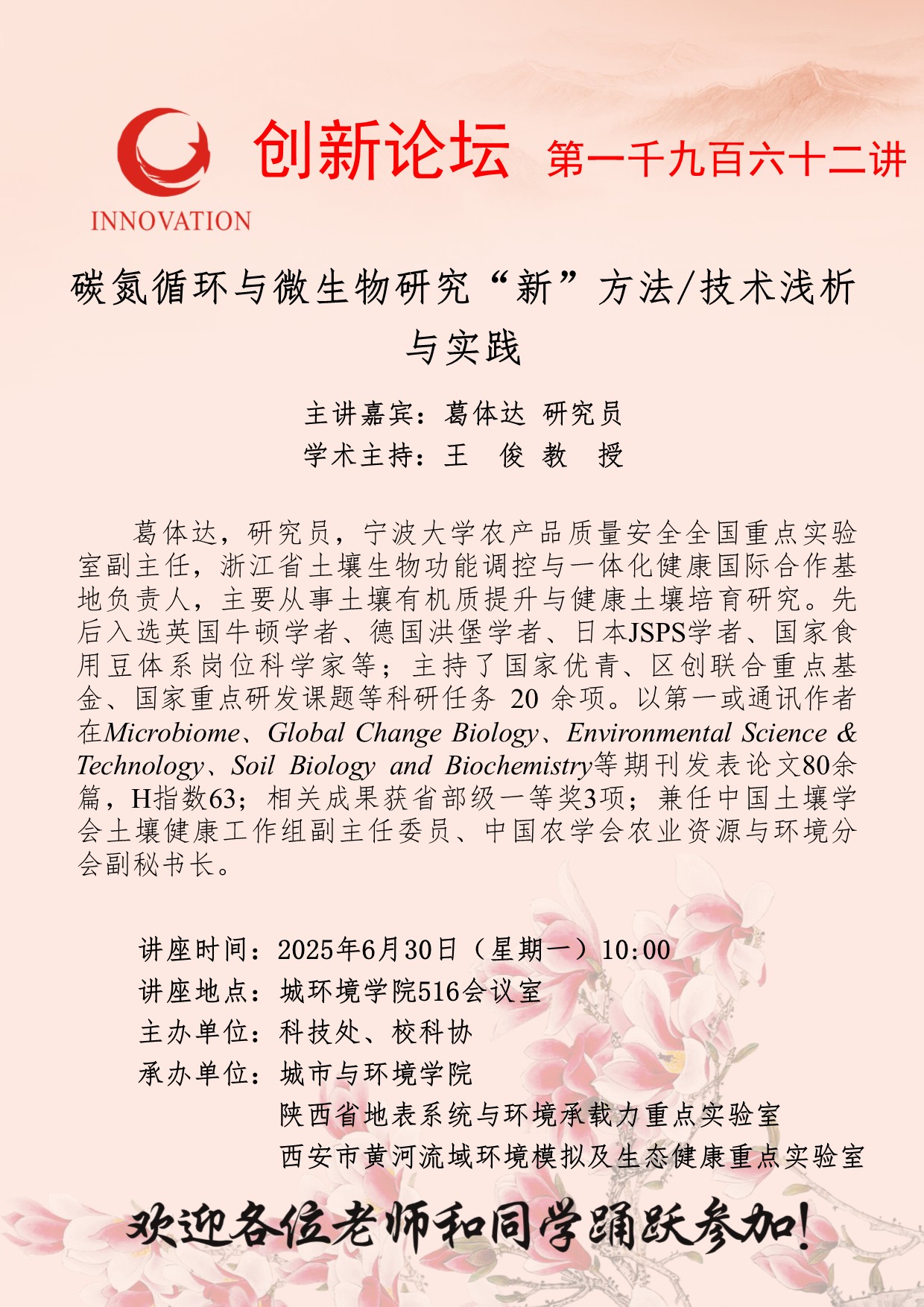 葛体达 研究员 乐动网页版登录入口创新论坛第一千九百六十二讲:碳氮循环与微生物研究“新”方法/技术浅析与实践 讲座时间 2025年6月30日(星期一)10:00 讲座地点 城环境学院516会议室 讲座人介绍 葛体达 研究员 讲座内容