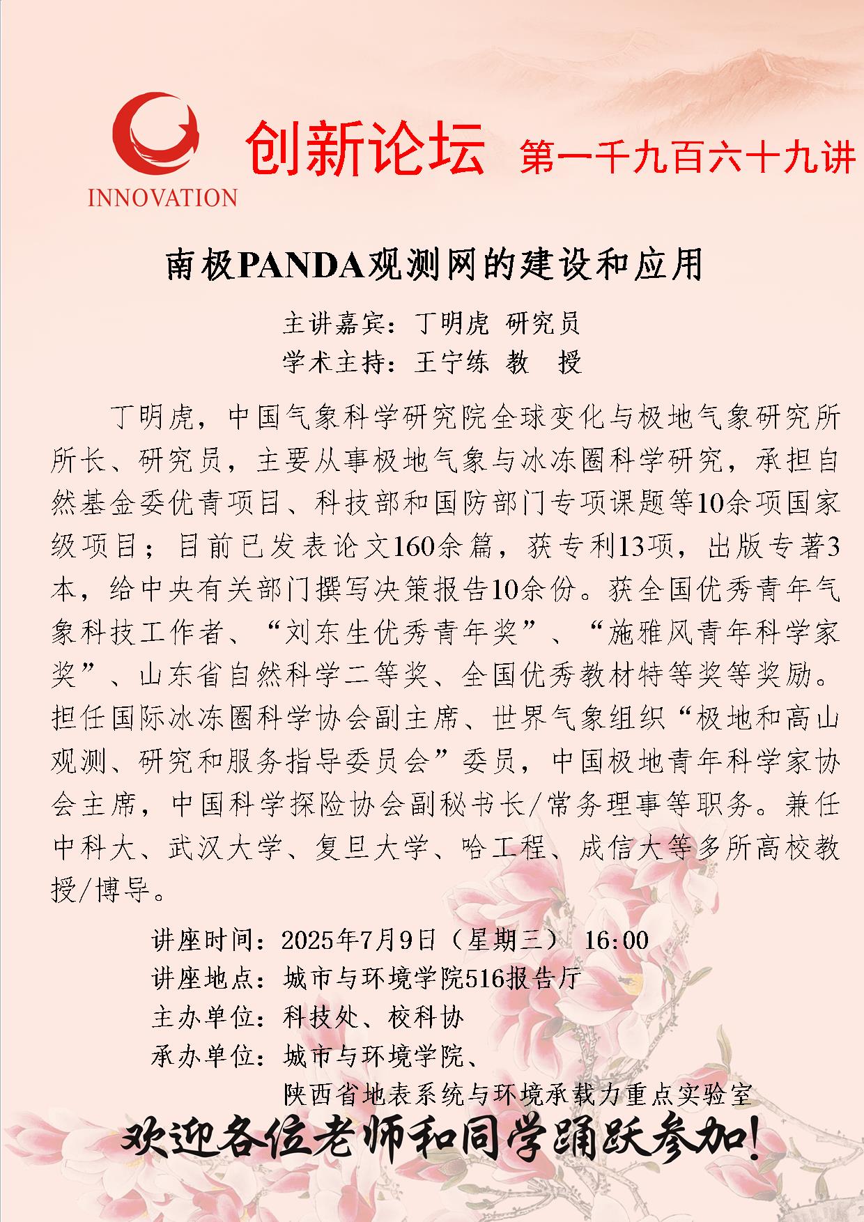 丁明虎 研究员 乐动网页版登录入口创新论坛第一千九百六十九讲:南极PANDA观测网的建设和应用 讲座时间 2025年7月9日(星期三) 16:00 讲座地点 城市与环境学院516报告厅 讲座人介绍 丁明虎 研究员 讲座内容