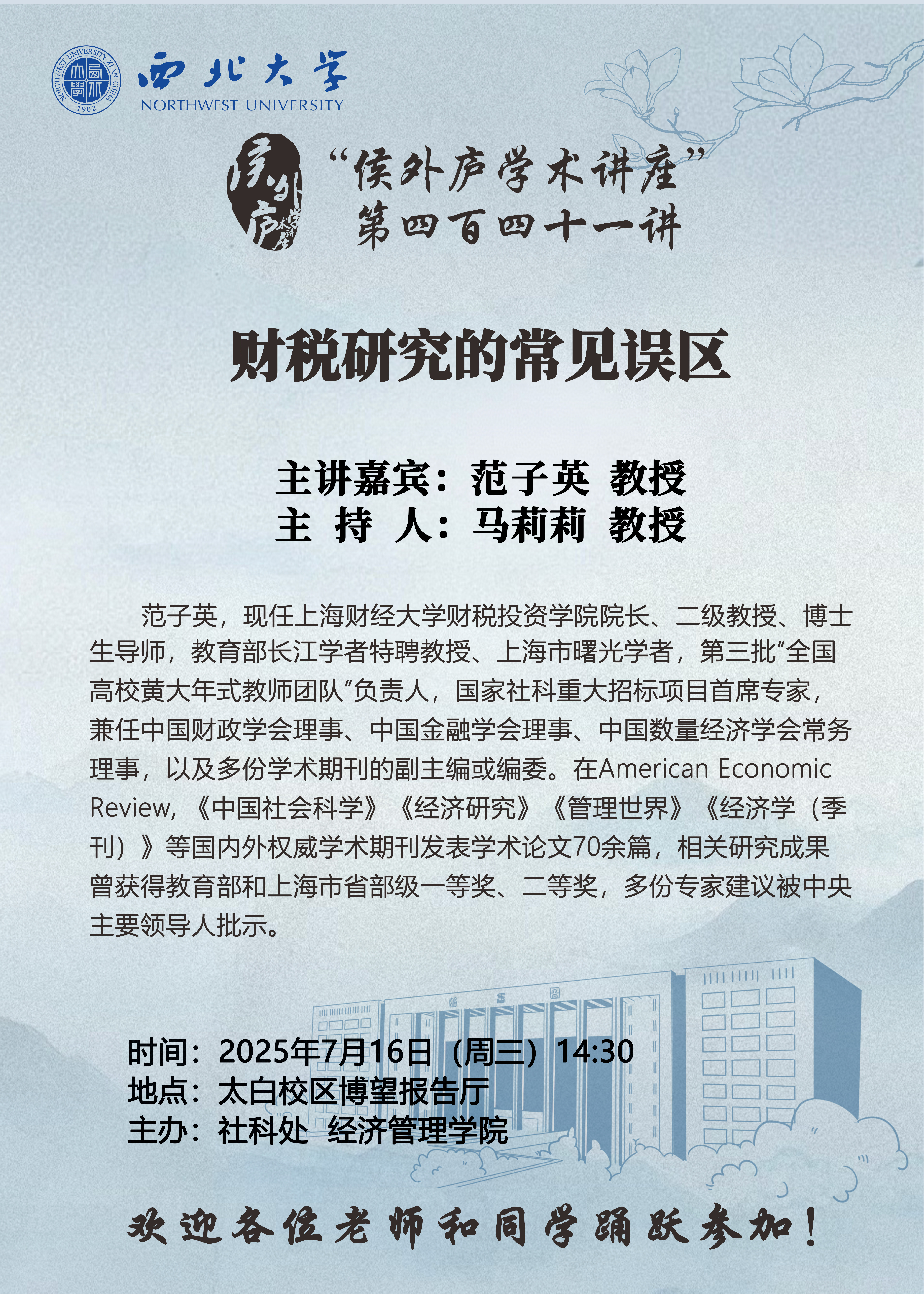 “侯外庐学术讲座”第四百四十讲:The Economics of Climate Change