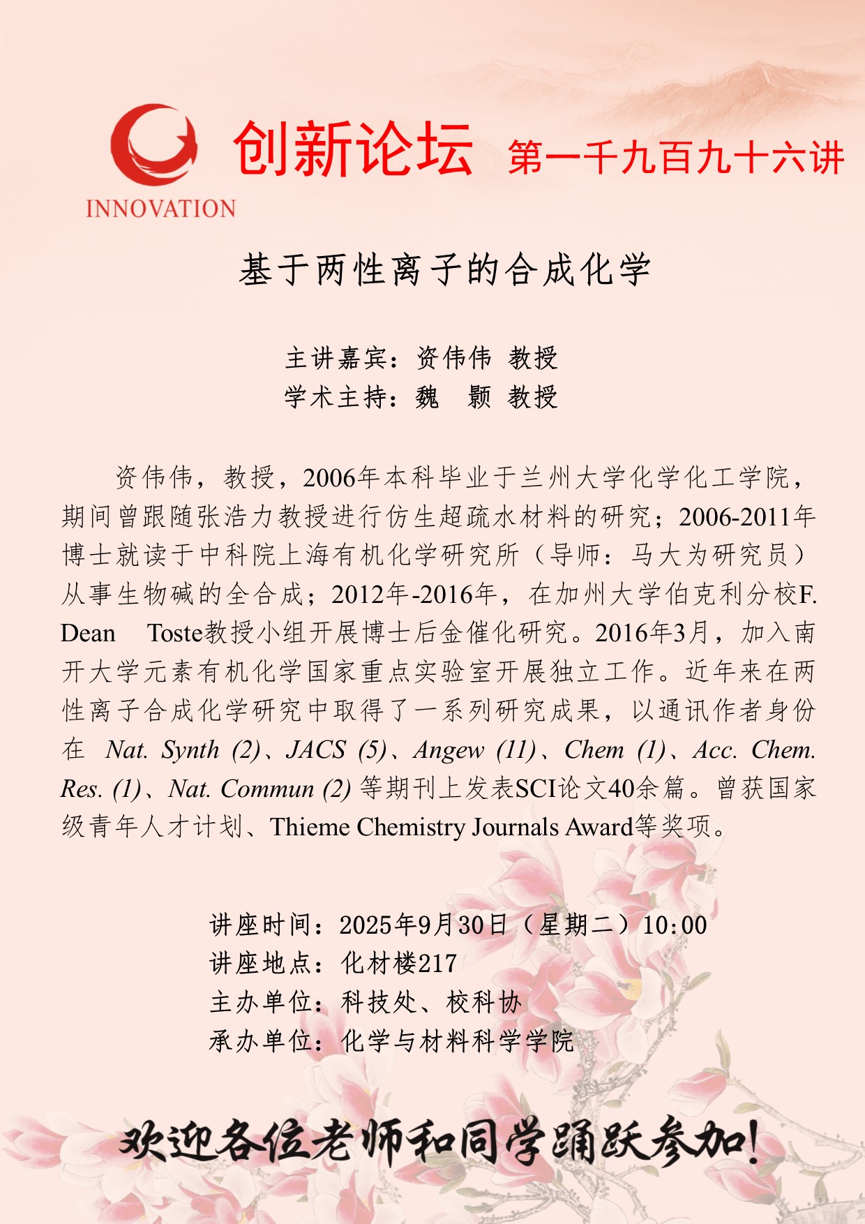 乐动网页版登录入口创新论坛第一千九百九十六讲: 基于两性离子的合成化学