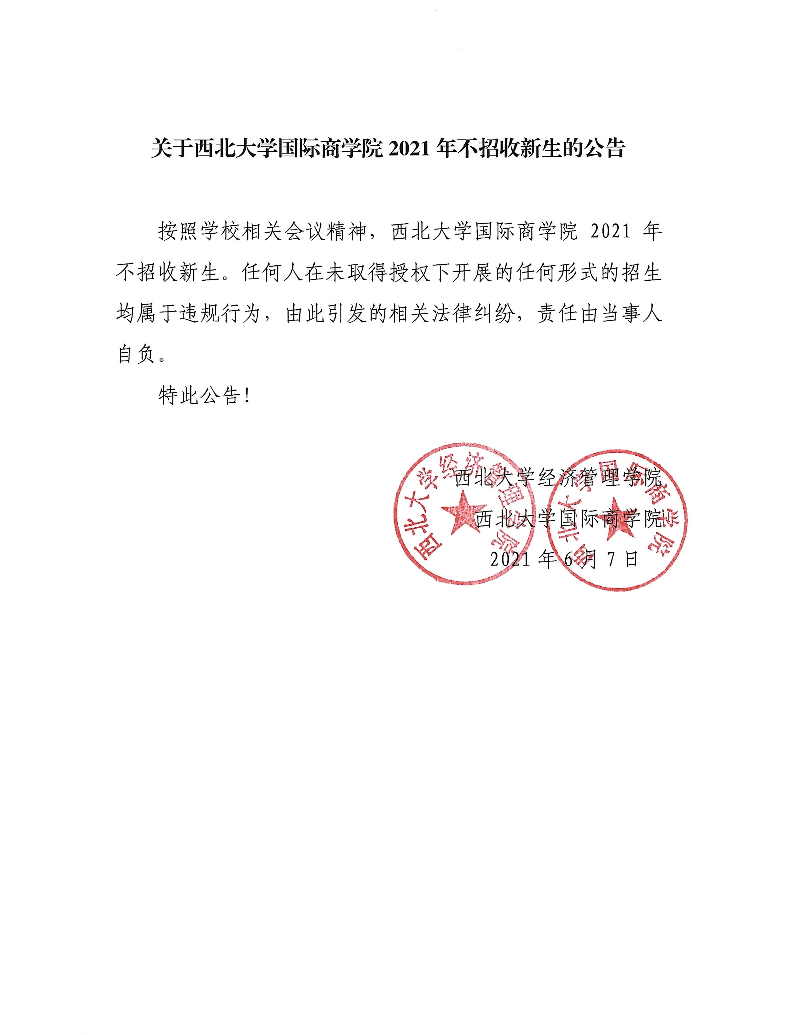 关于乐动网页版登录入口国际商学院2021年不招收新生的公告