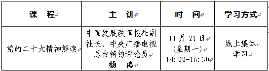 为深入学习贯彻党的二十大精神,深刻学习领会习近平新时代中国特色社会主义思想,不断加强对我校党员干部的系统性教育培训,用党的创新理论武装头脑,确保作风建设专项行动在我校落地生根、开花结果,学校党委决定举办党的二十大精神解读专题培训。现将有关安排通知如下。