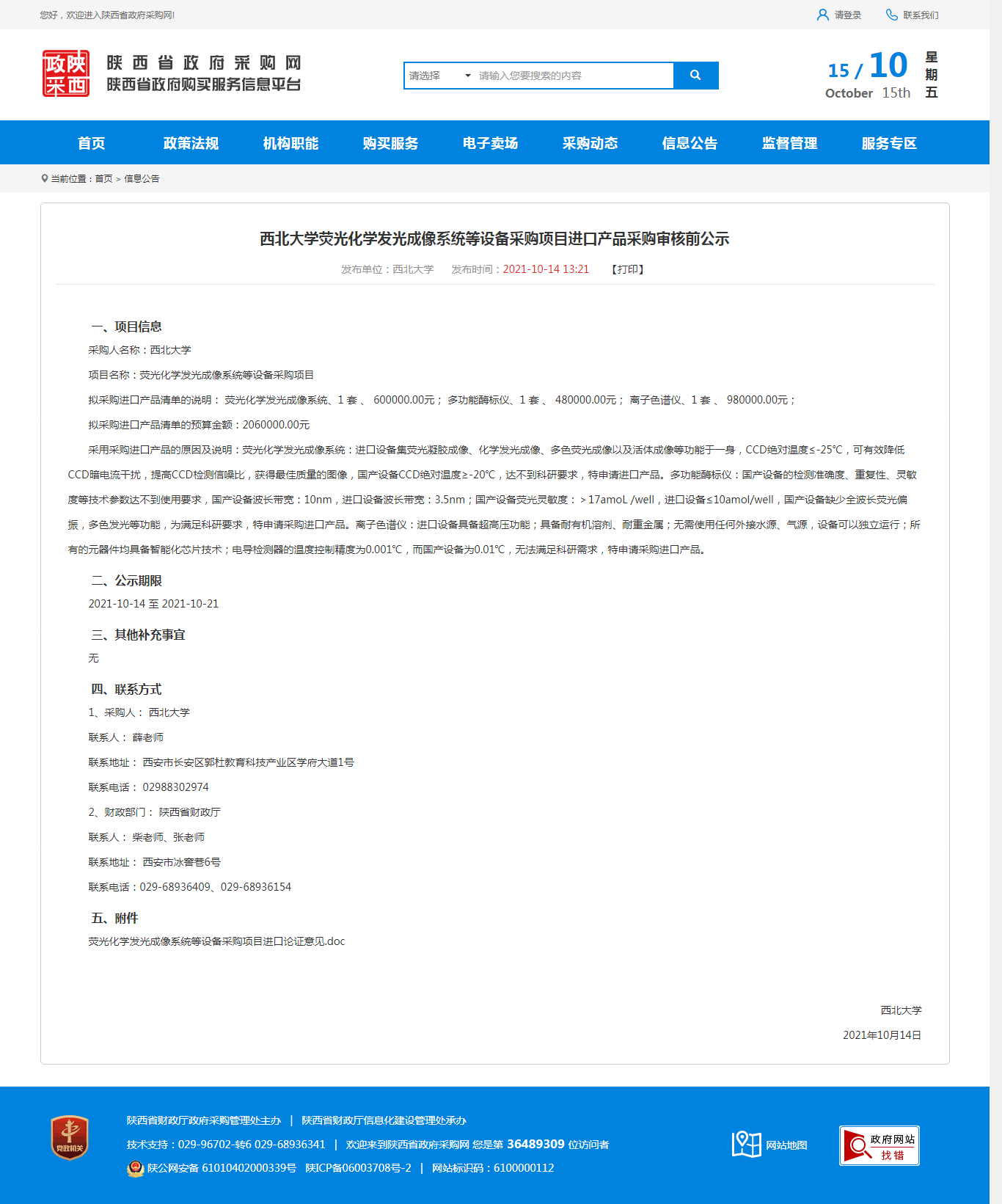乐动网页版登录入口荧光化学发光成像系统等设备采购项目进口产品采购审核前公示 作者: 编辑:采购与招标办公室 时间:2021-10-15 原公告地址:http://www.ccgp-shaanxi.gov.cn/notice/noticeDetail.do?noticeguid=8a85be327c20d508017c7d292ccd6e1a