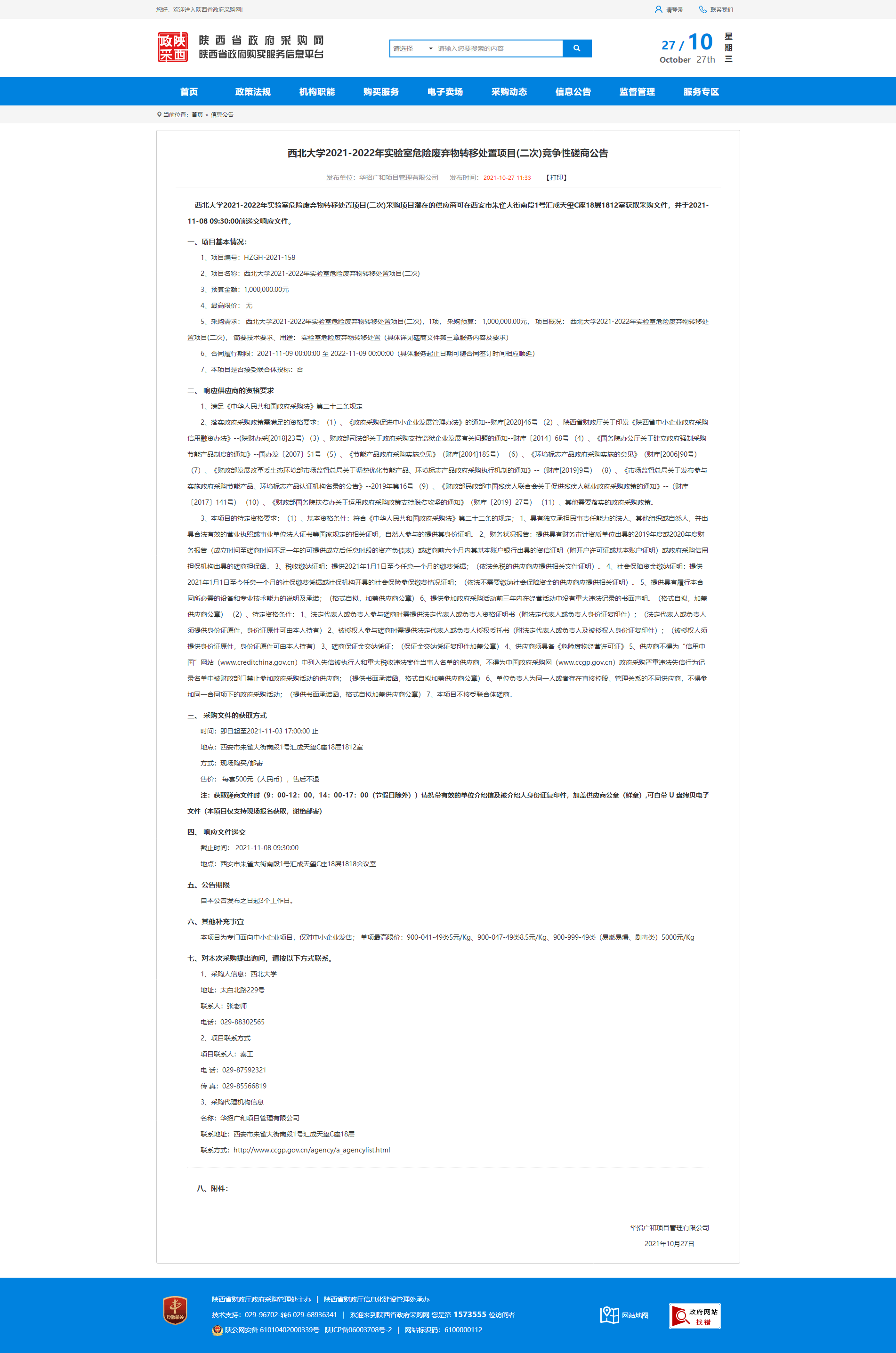 乐动网页版登录入口2021-2022年实验室危险废弃物转移处置项目(二次)竞争性磋商公告