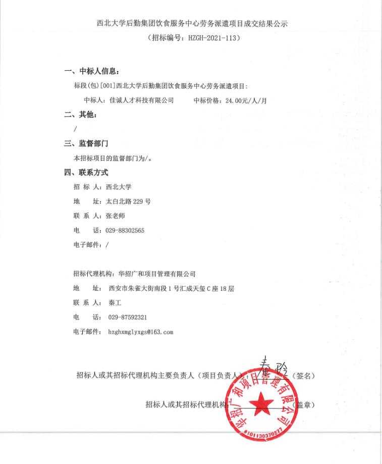 关于乐动网页版登录入口后勤集团饮食服务中心劳务派遣项目成交结果公告