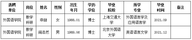 经用人单位推荐,人力资源部审查,学校教学督导及院系相关专家考核,我校拟确定下列人员来校工作。本着公平、公正、公开的原则,现将本次拟选聘人员基本情况公示如下: