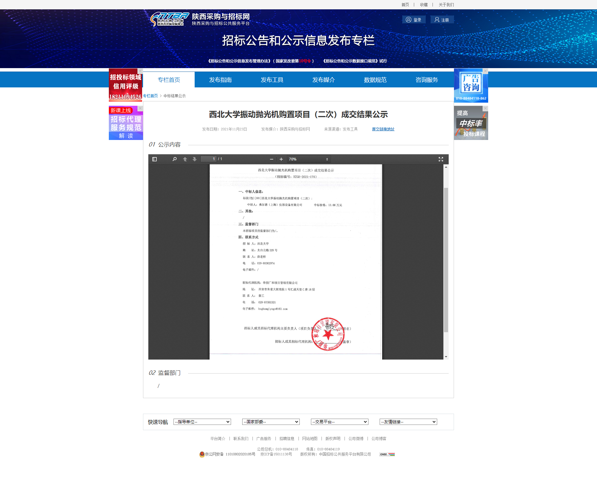 乐动网页版登录入口振动抛光机购置项目(二次)成交结果公示 作者: 编辑:薛利娟 时间:2021-11-24 原公告网址:http://bulletin.sntba.com/resultBulletin/2021-11-23/367274.html