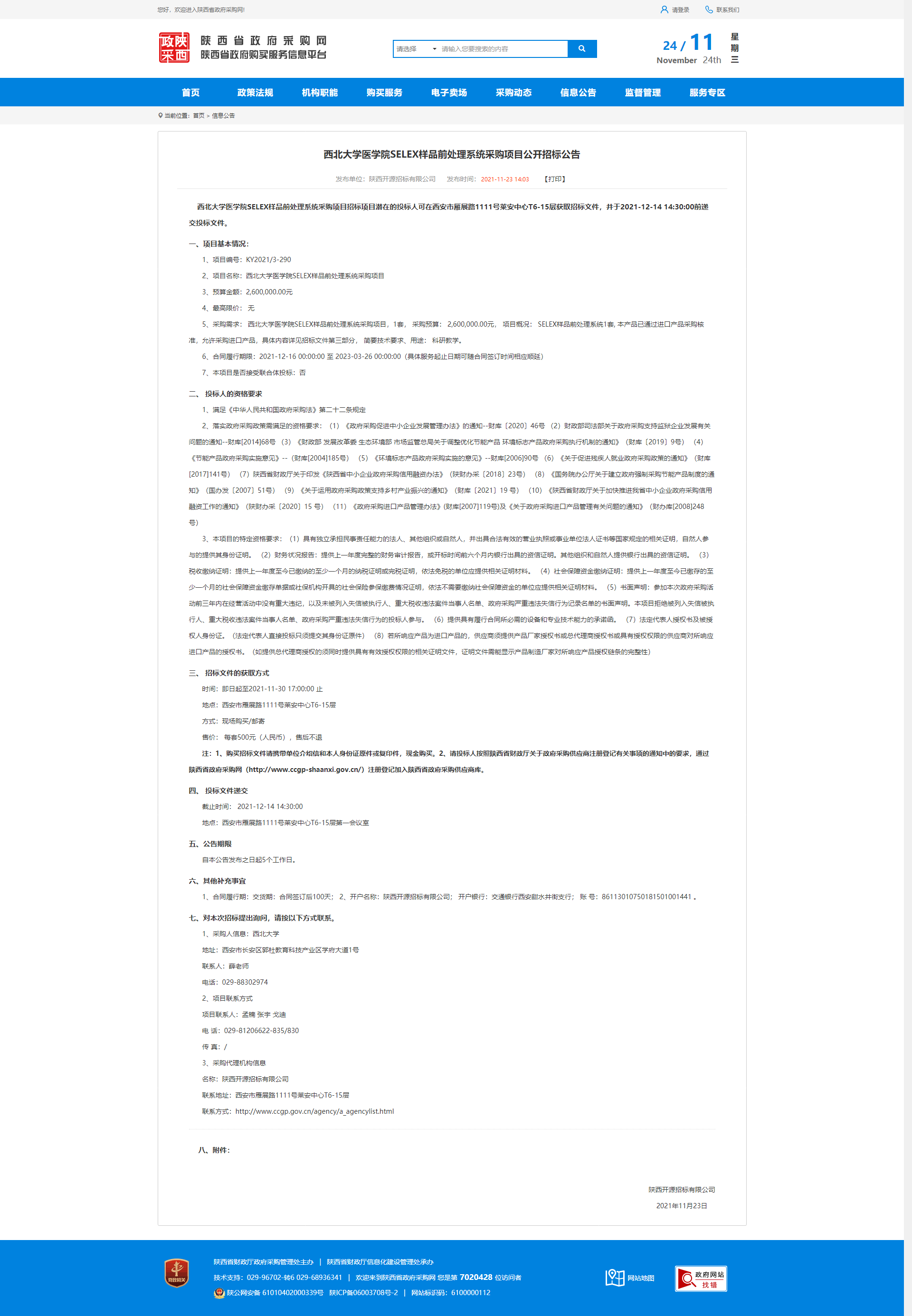 乐动网页版登录入口医学院SELEX样品前处理系统采购项目公开招标公告 作者: 编辑:薛利娟 时间:2021-11-24 原公告网址:http://www.ccgp-shaanxi.gov.cn/notice/noticeDetail.do?noticeguid=8a85be327d2d74ab017d4b5ce2de36ff