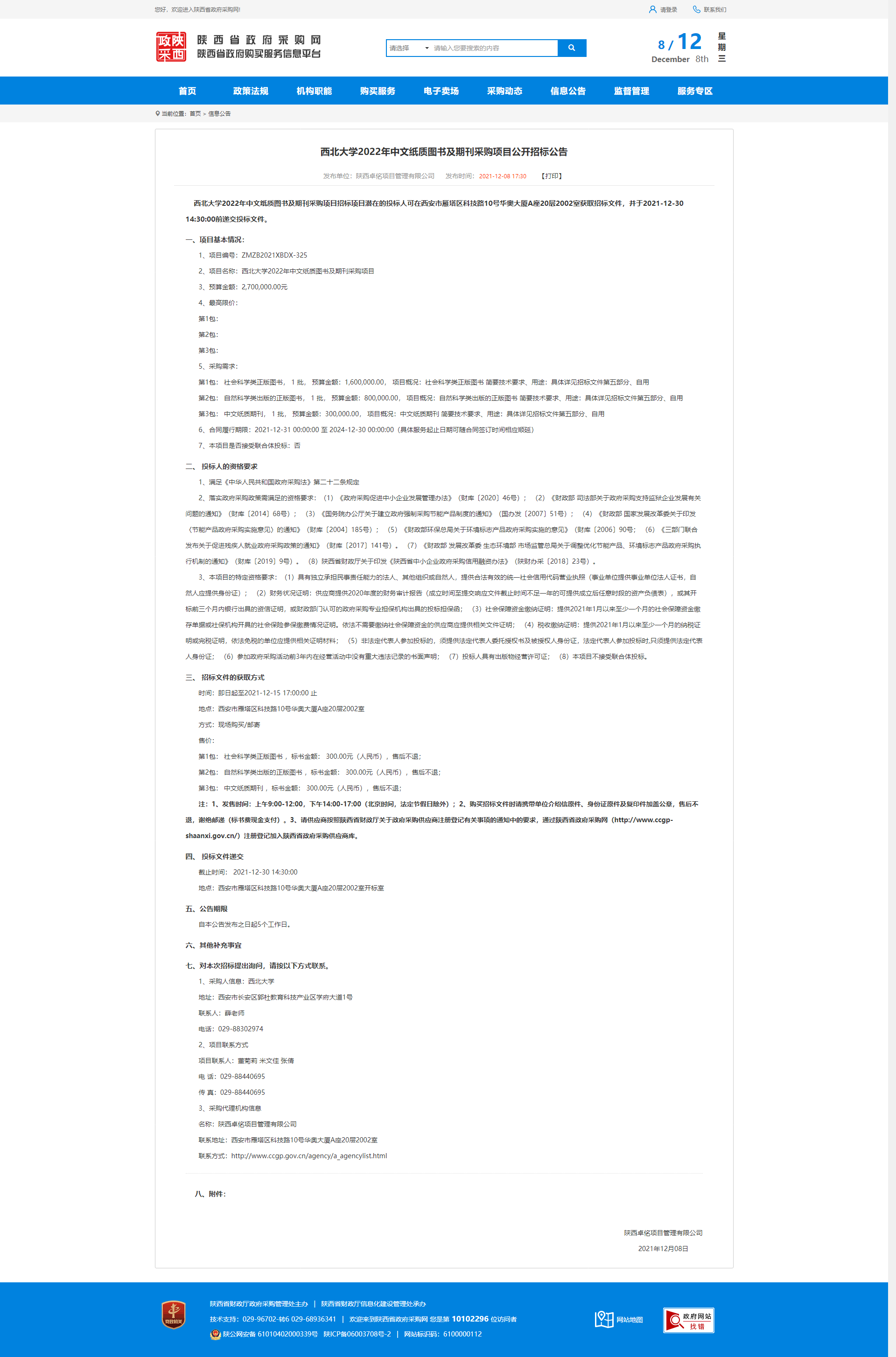 乐动网页版登录入口2022年中文纸质图书及期刊采购项目公开招标公告 作者: 编辑:薛利娟 时间:2021-12-08 原公告链接:http://www.ccgp-shaanxi.gov.cn/notice/noticeDetail.do?noticeguid=8a85be317d6a7607017d991af3612a99
