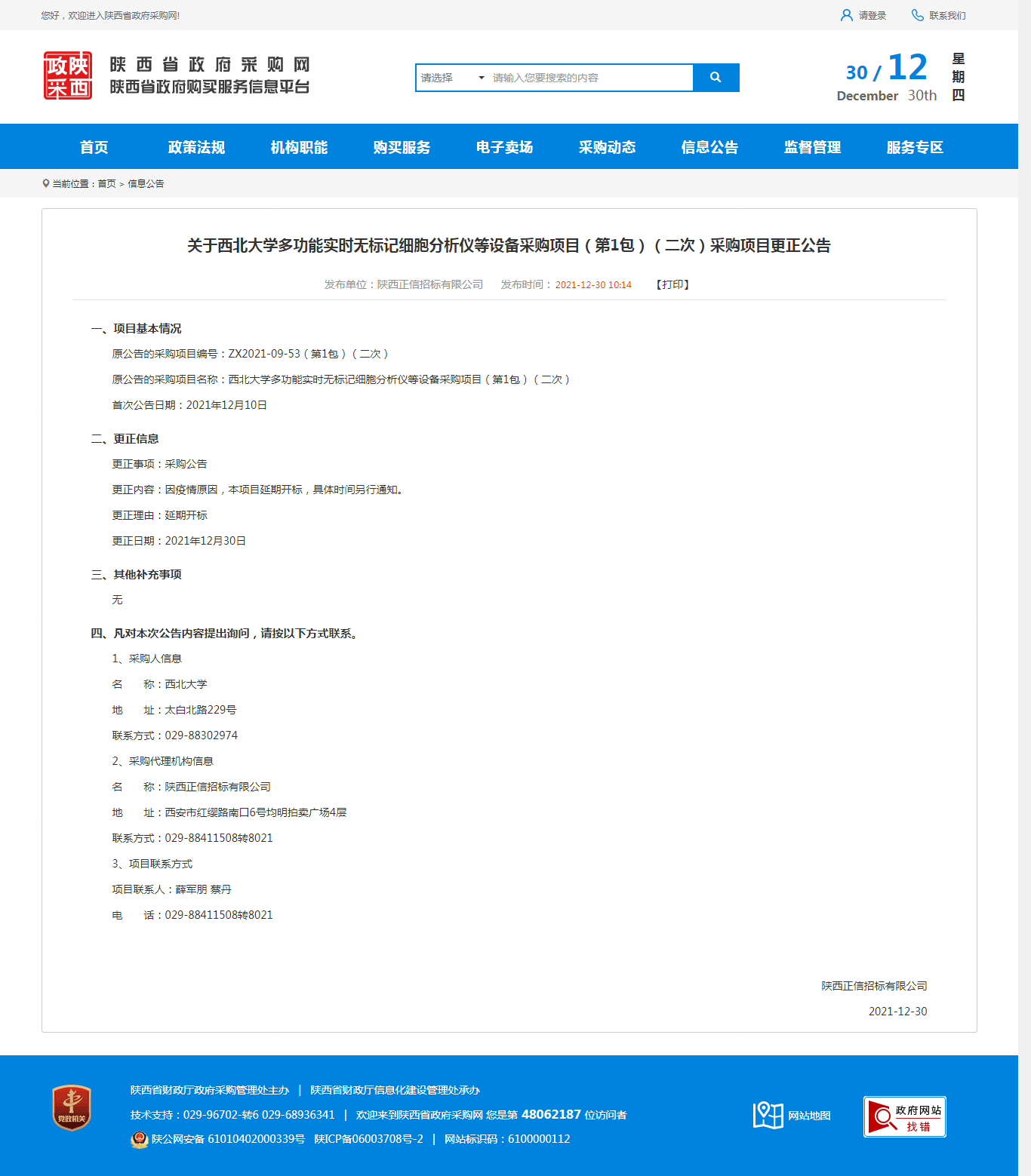 关于乐动网页版登录入口多功能实时无标记细胞分析仪等设备采购项目(第1包)(二次)采购项目更正公告 作者: 编辑:薛利娟 时间:2021-12-30 原公告链接:http://www.ccgp-shaanxi.gov.cn/notice/noticeDetail.do?noticeguid=8a85be337debad6b017e09039d8453ea