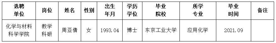 经用人单位推荐,人力资源部审查,学校教学督导及院系相关专家考核,我校拟确定下列人员来校工作。本着公平、公正、公开的原则,现将本次拟选聘人员基本情况公示如下: