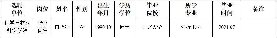 经用人单位及教学督导考核、学校研究,拟同意选聘下列人员来校工作,其聘任关系为A类人事代理。本着公平、公正、公开的原则,现将拟选聘人员基本情况公示如下: