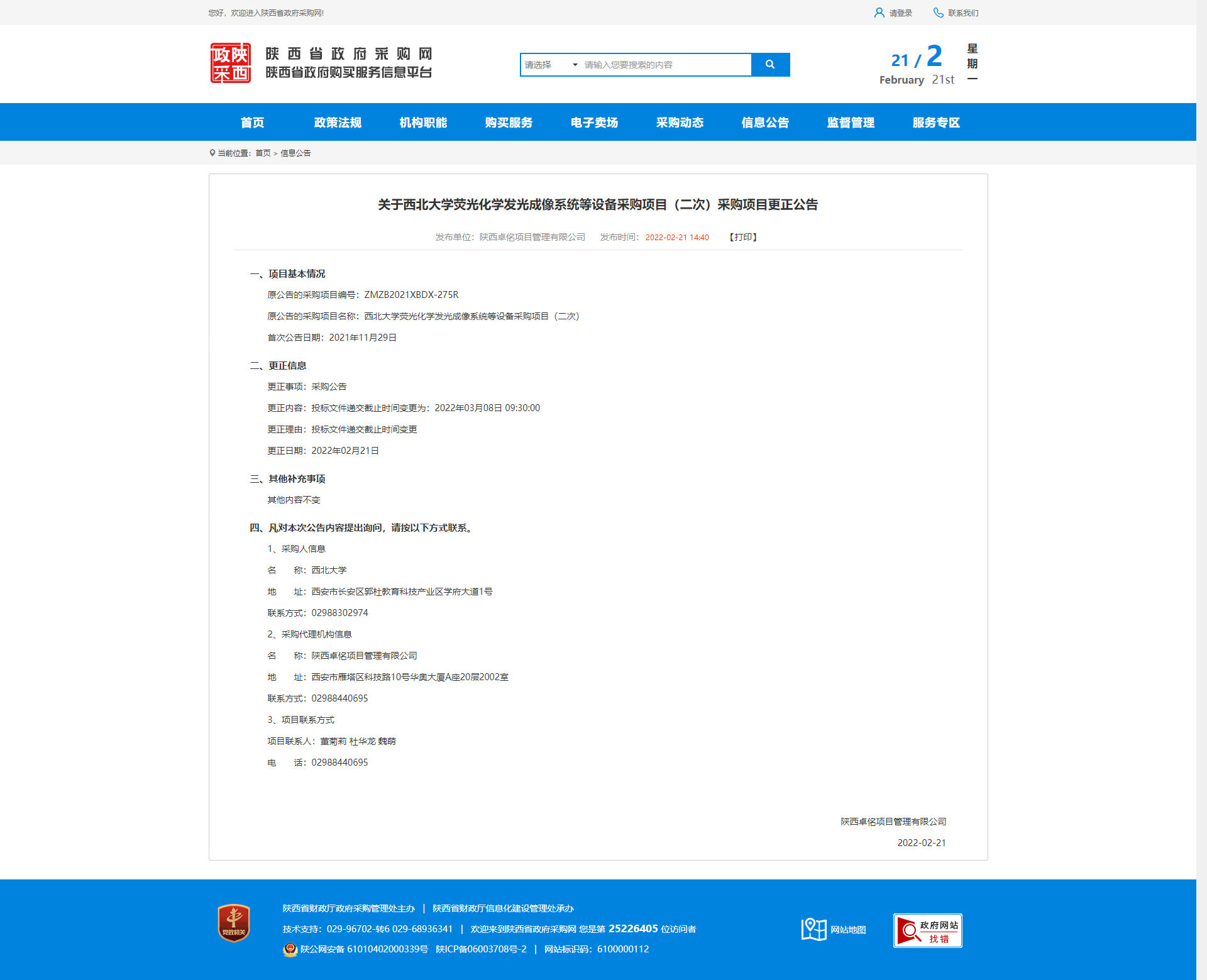 关于乐动网页版登录入口荧光化学发光成像系统等设备采购项目(二次)采购项目更正公告 作者: 编辑:薛利娟 时间:2022-02-21 原公告链接:http://www.ccgp-shaanxi.gov.cn/notice/noticeDetail.do?noticeguid=8a85be317ee7907d017f1aa113f346e8