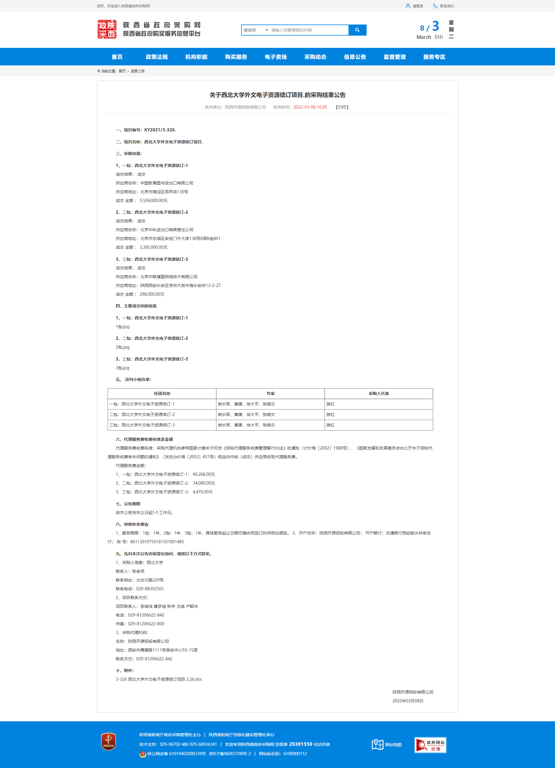 关于乐动网页版登录入口外文电子资源续订项目的采购结果公告
