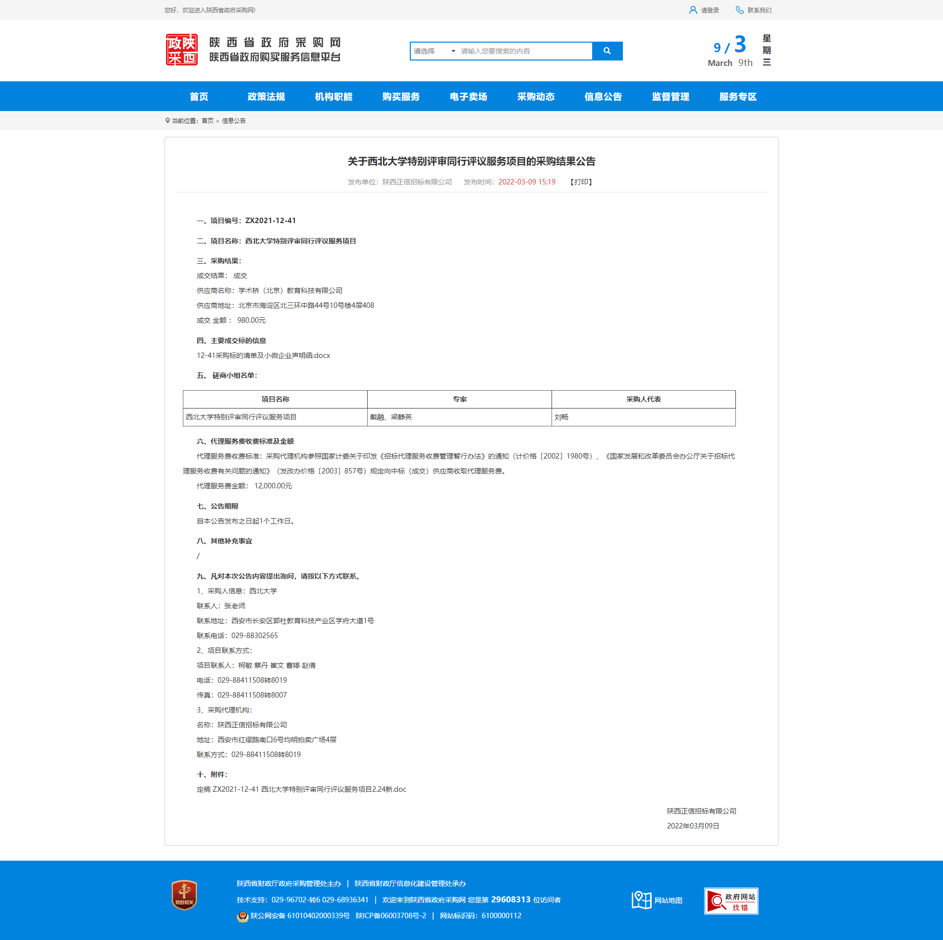 关于乐动网页版登录入口特别评审同行评议服务项目的采购结果公告