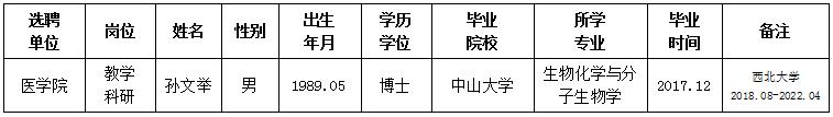 经用人单位推荐,人力资源部审查,学校教学督导及院系相关专家考核,我校拟确定下列人员来校工作。本着公平、公正、公开的原则,现将本次拟选聘人员基本情况公示如下: